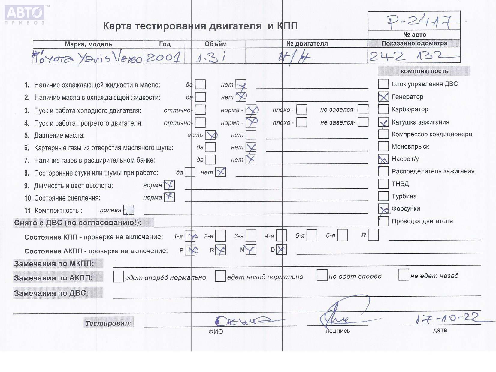 | Автомобиль / VIN: | P2417 JTDKW283900184226 |