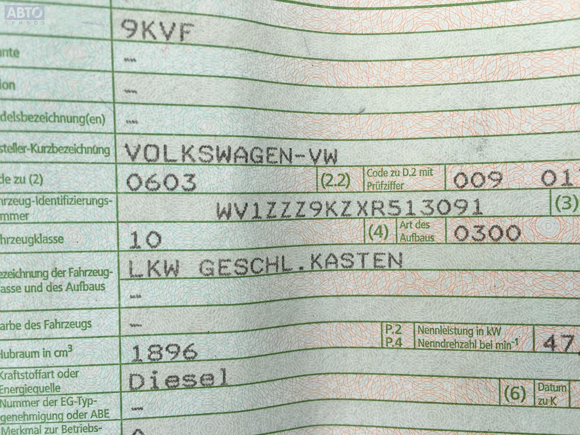 | Автомобиль / VIN: | S5924 WV1ZZZ9KZXR513091 |