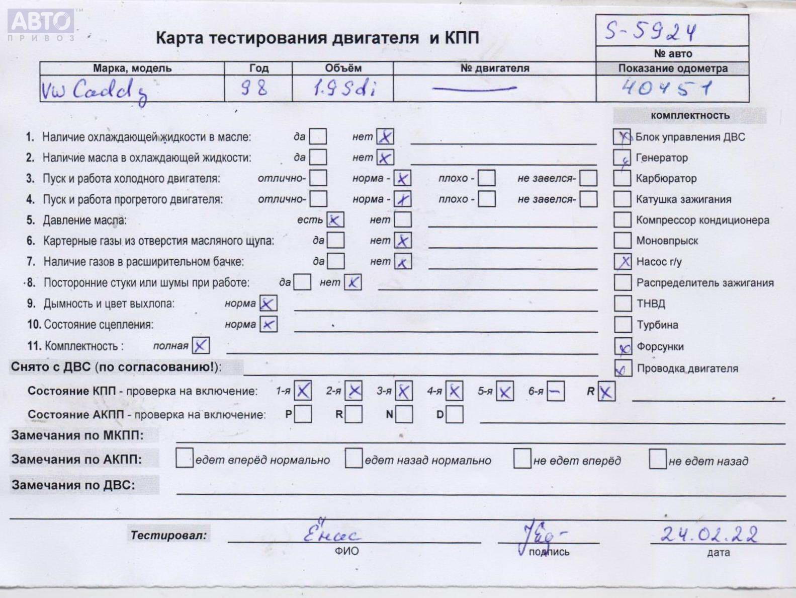 | Марка / Модель / Год: | Volkswagen Caddy (1995-2004) 1998 |