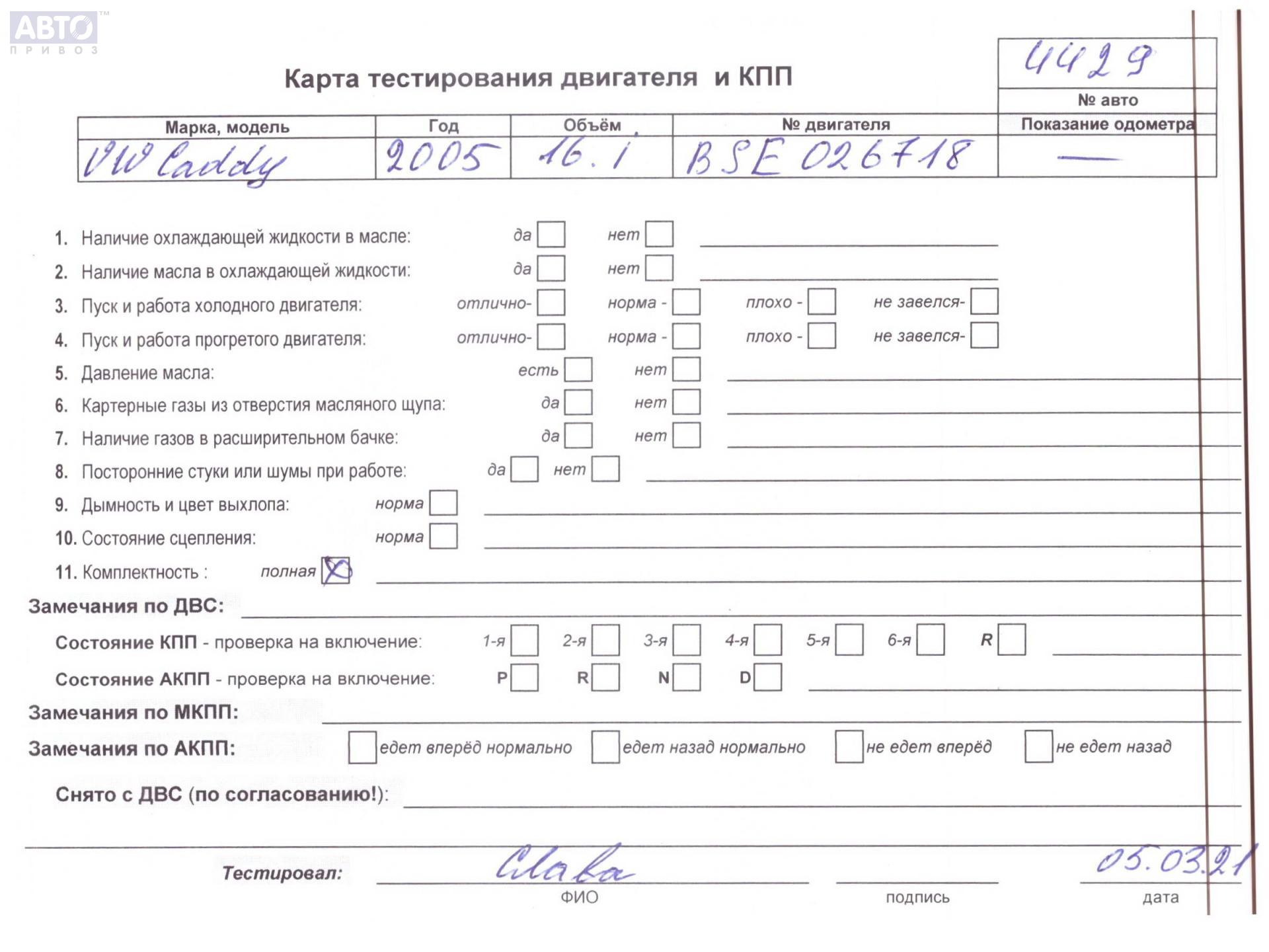 | Марка / Модель / Год: | Volkswagen Caddy (2004-2010) 2005 |