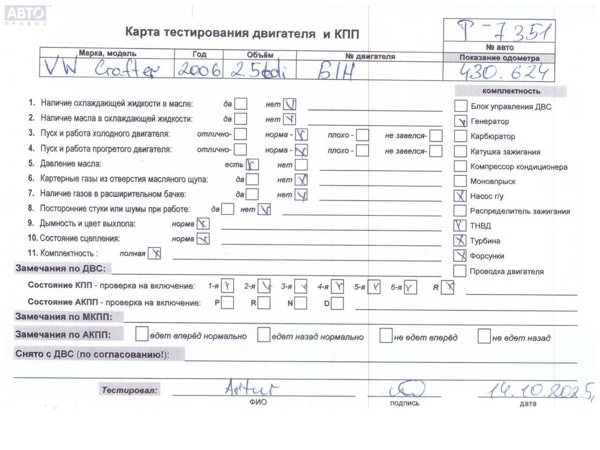 | Автомобиль / VIN: | T7351 WV1ZZZ2EZ66001308 |