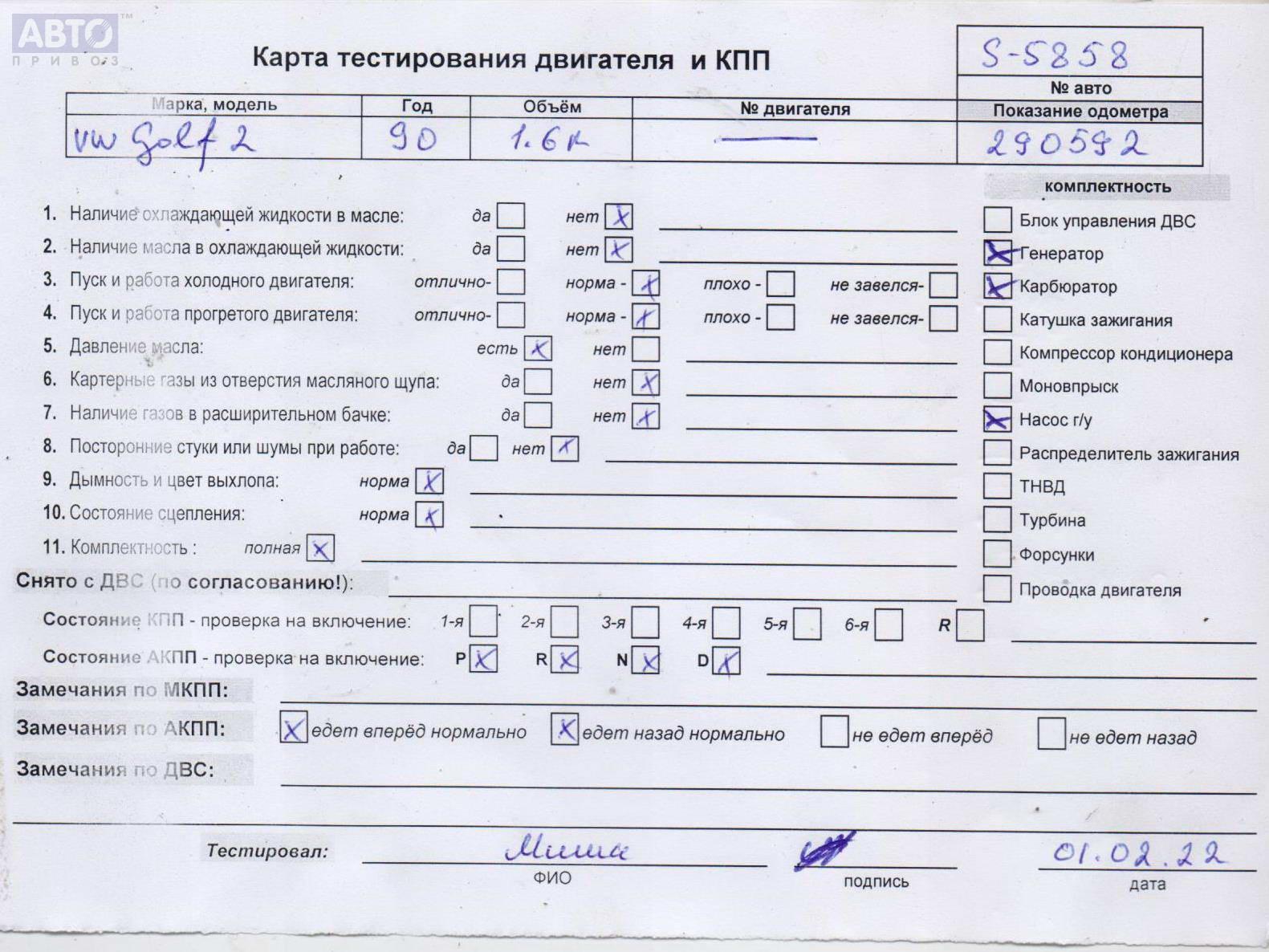 | Марка / Модель / Год: | Volkswagen Golf-2 1990 |