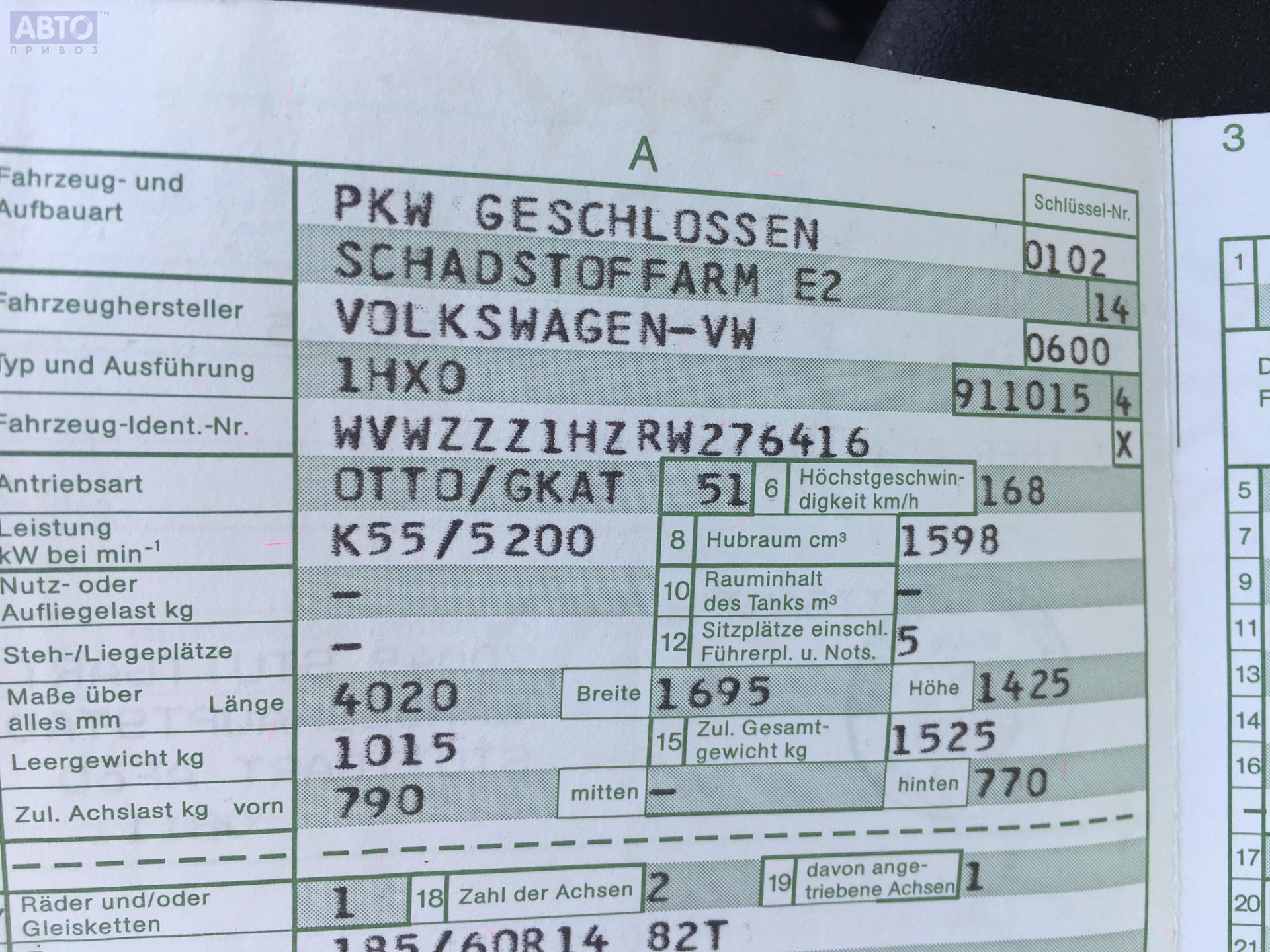 | Автомобиль / VIN: | S6019 WVWZZZ1HZRW276416 |