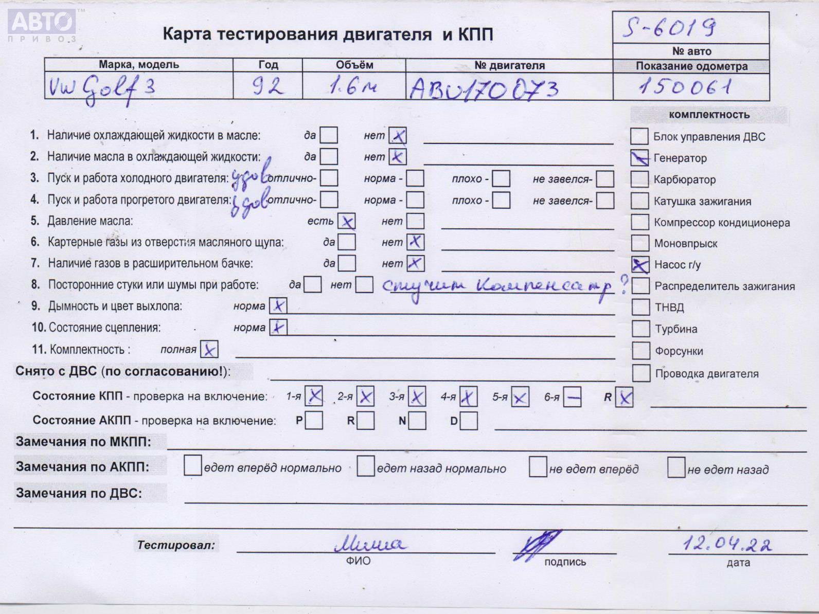 | Марка / Модель / Год: | Volkswagen Golf-3 1992 |