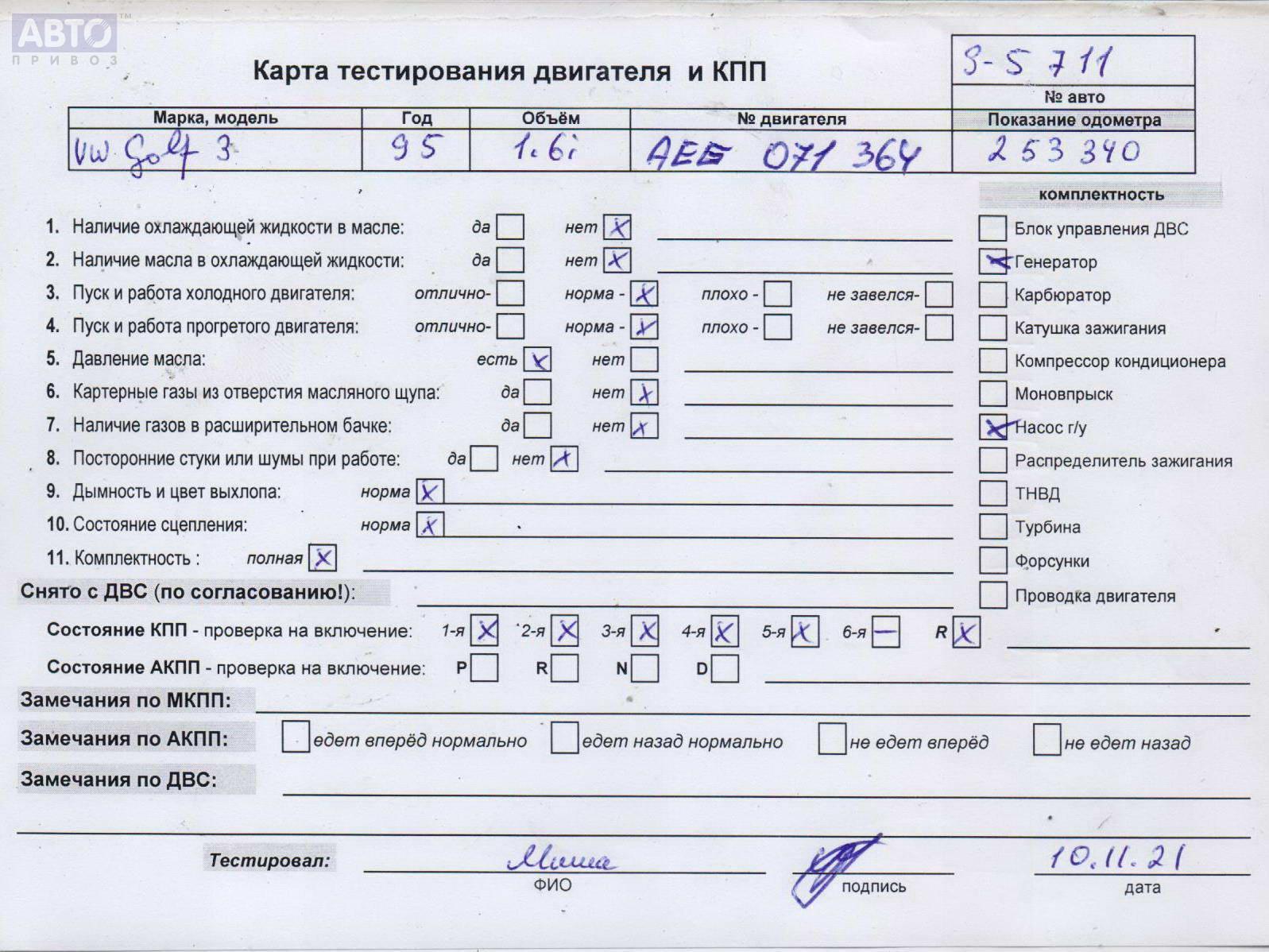 | Марка / Модель / Год: | Volkswagen Golf-3 1995 |