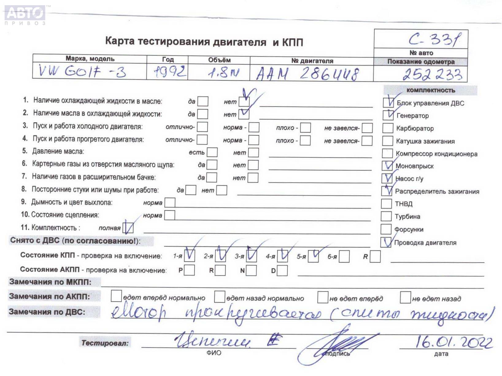 | Марка / Модель / Год: | Volkswagen Golf-3 1992 |