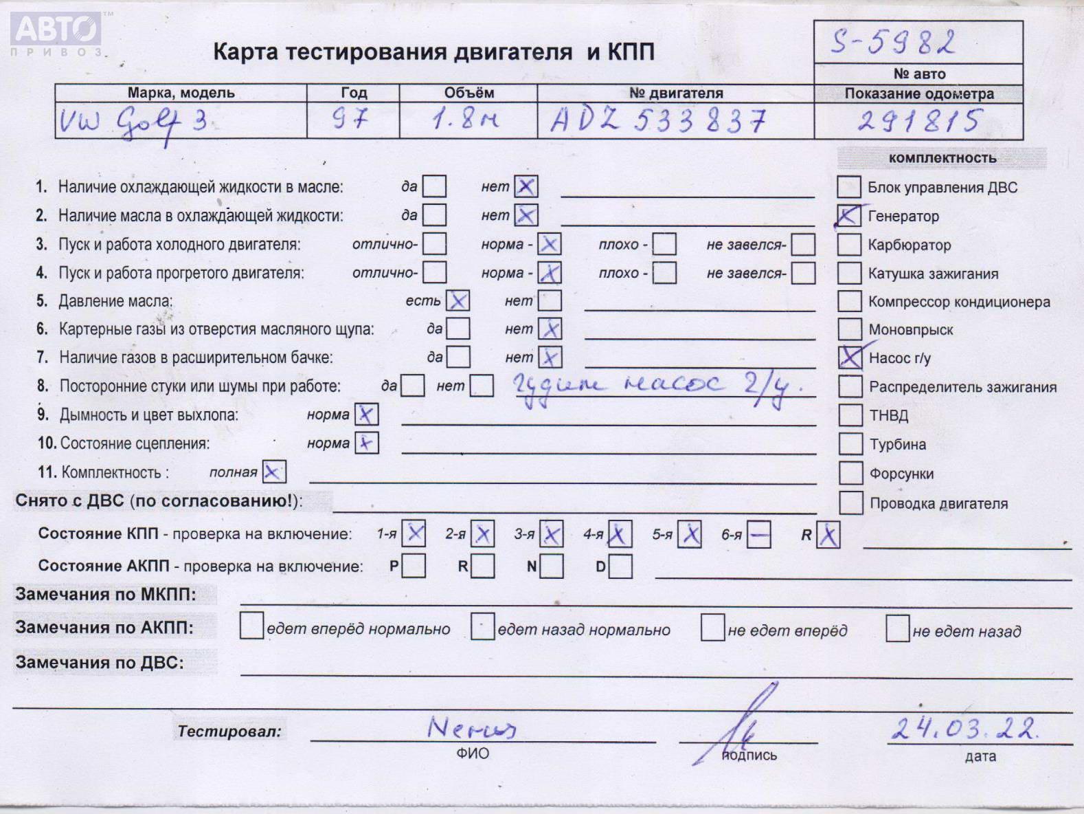 | Марка / Модель / Год: | Volkswagen Golf-3 1997 |