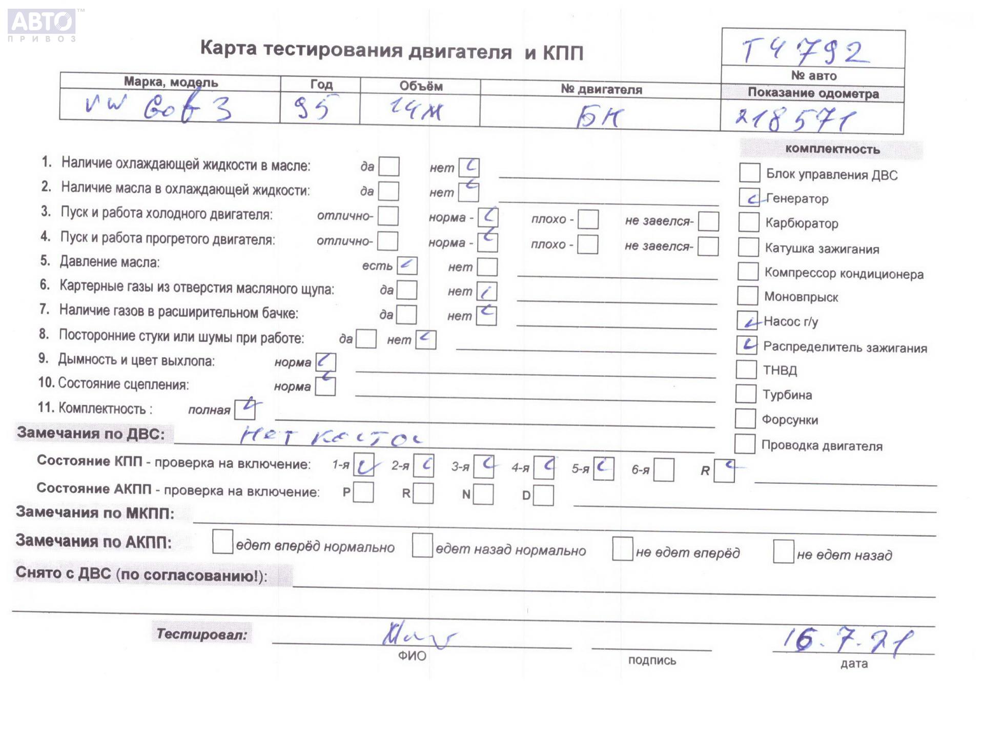 | Марка / Модель / Год: | Volkswagen Golf-3 1995 |