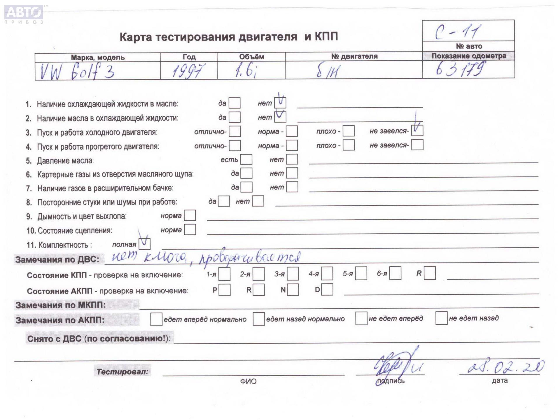 | Марка / Модель / Год: | Volkswagen Golf-3 1997 |