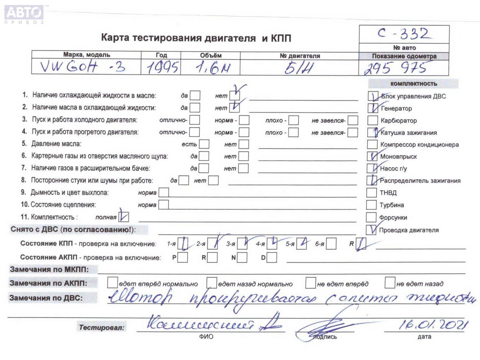 | Марка / Модель / Год: | Volkswagen Golf-3 1995 |