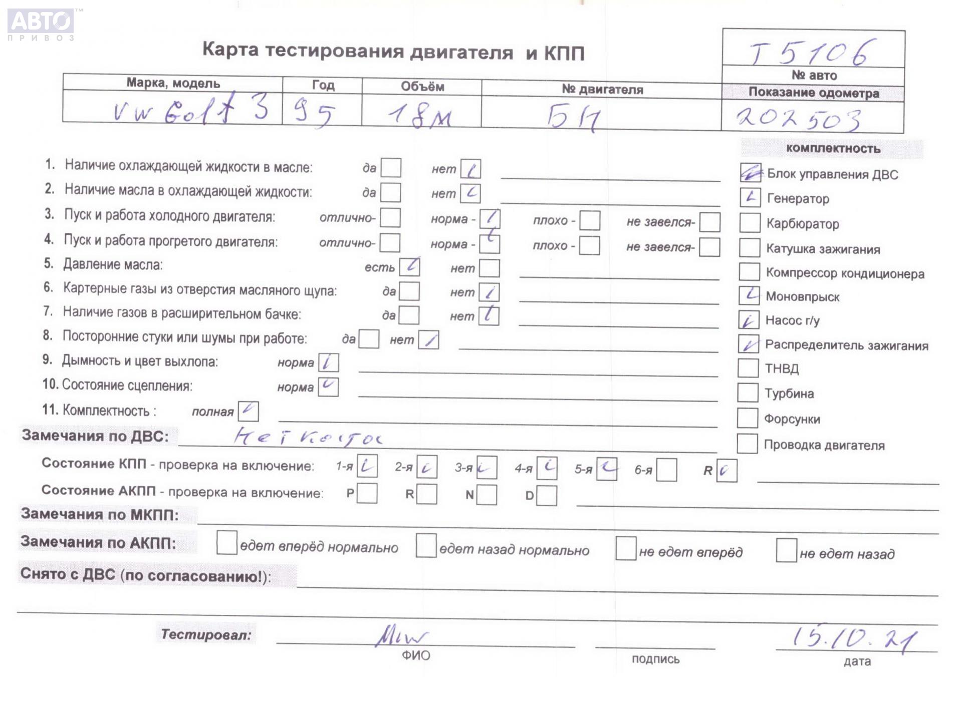 | Марка / Модель / Год: | Volkswagen Golf-3 1995 |