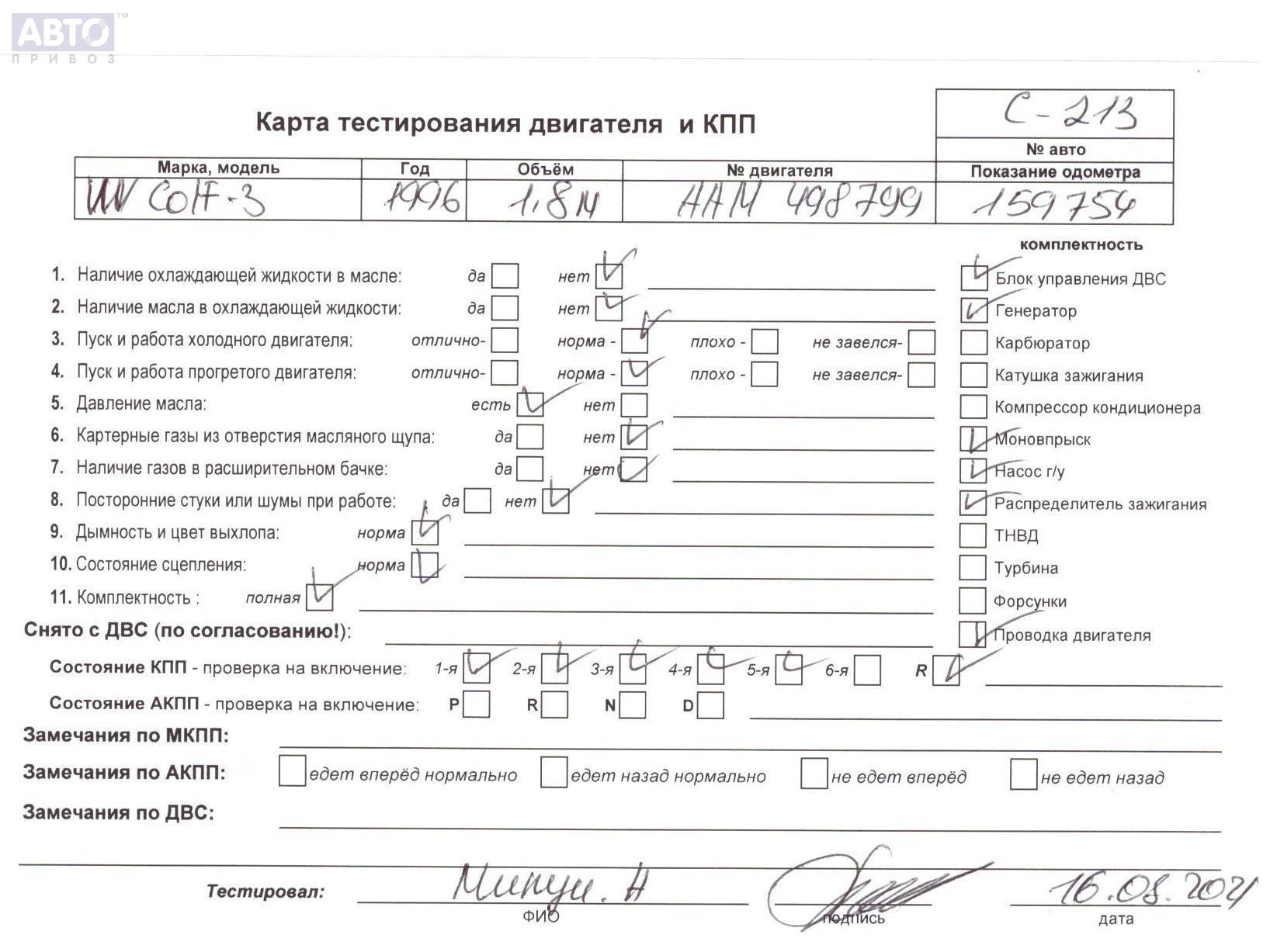 | Автомобиль / VIN: | C0213 WVWZZZ1HZTW020155 |