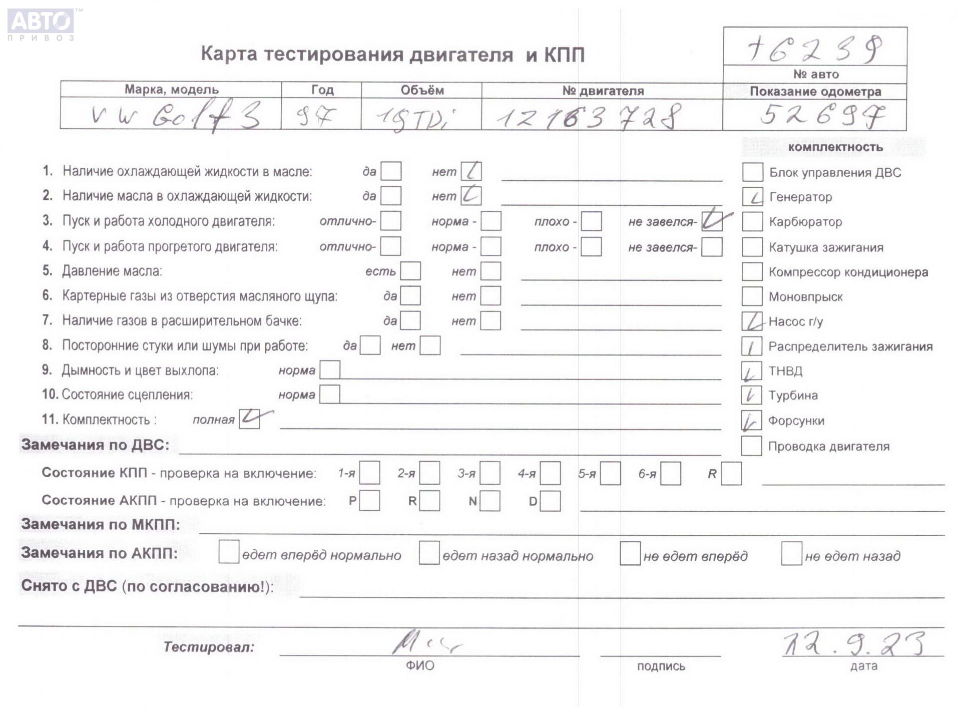 | Марка / Модель / Год: | Volkswagen Golf-3 1994 |
