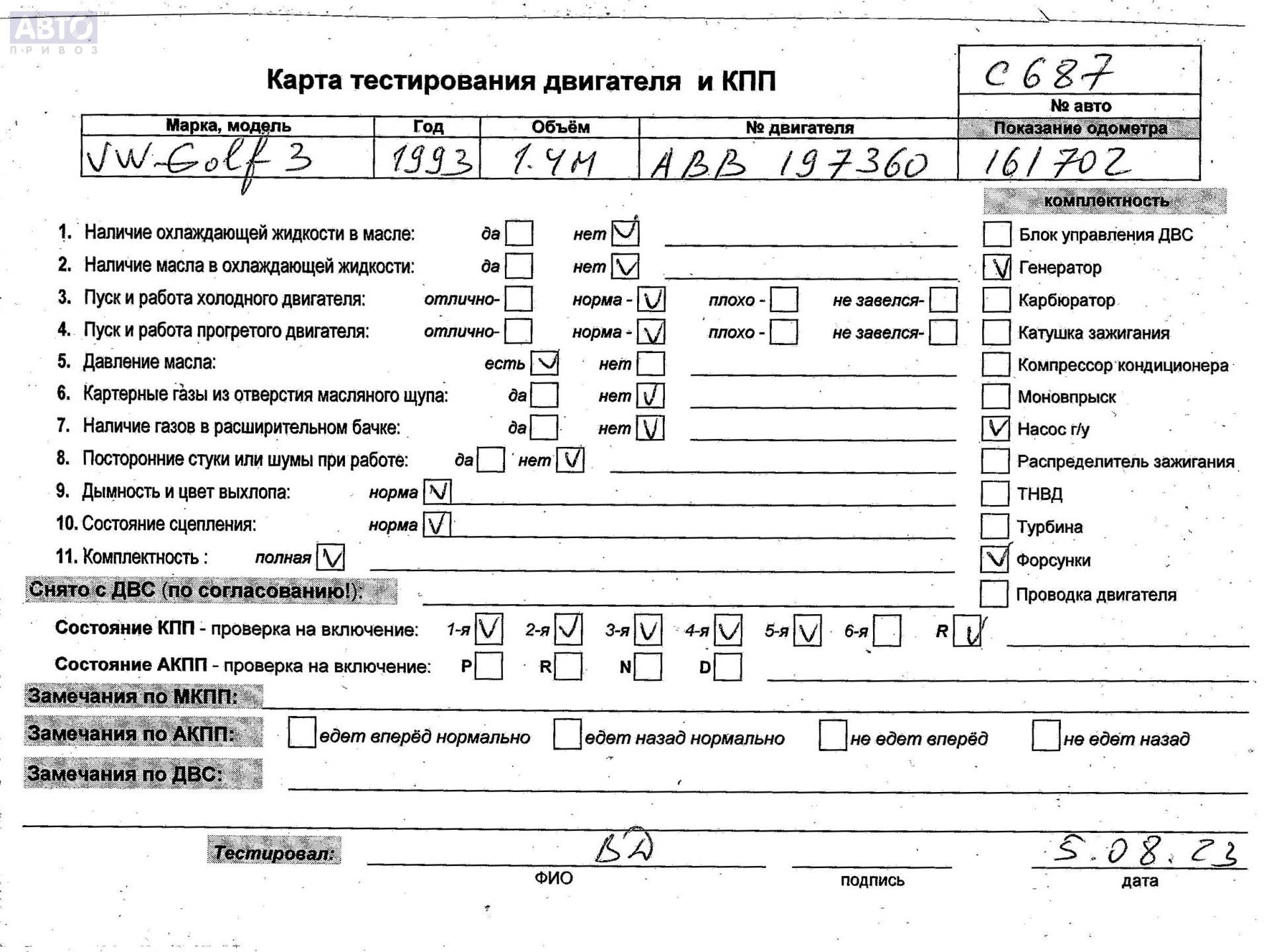 | Марка / Модель / Год: | Volkswagen Golf-3 1993 |