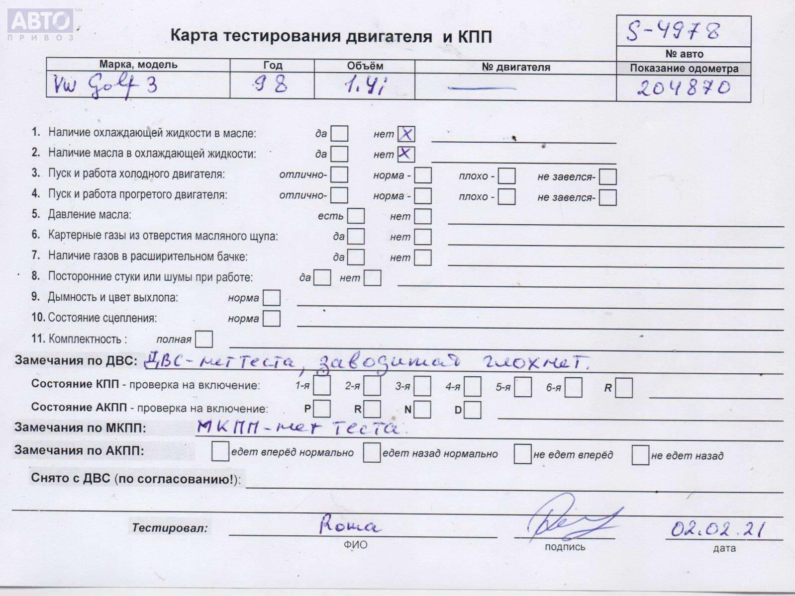 | Автомобиль / VIN: | S4978 WVWZZZ1HZVW281163 |