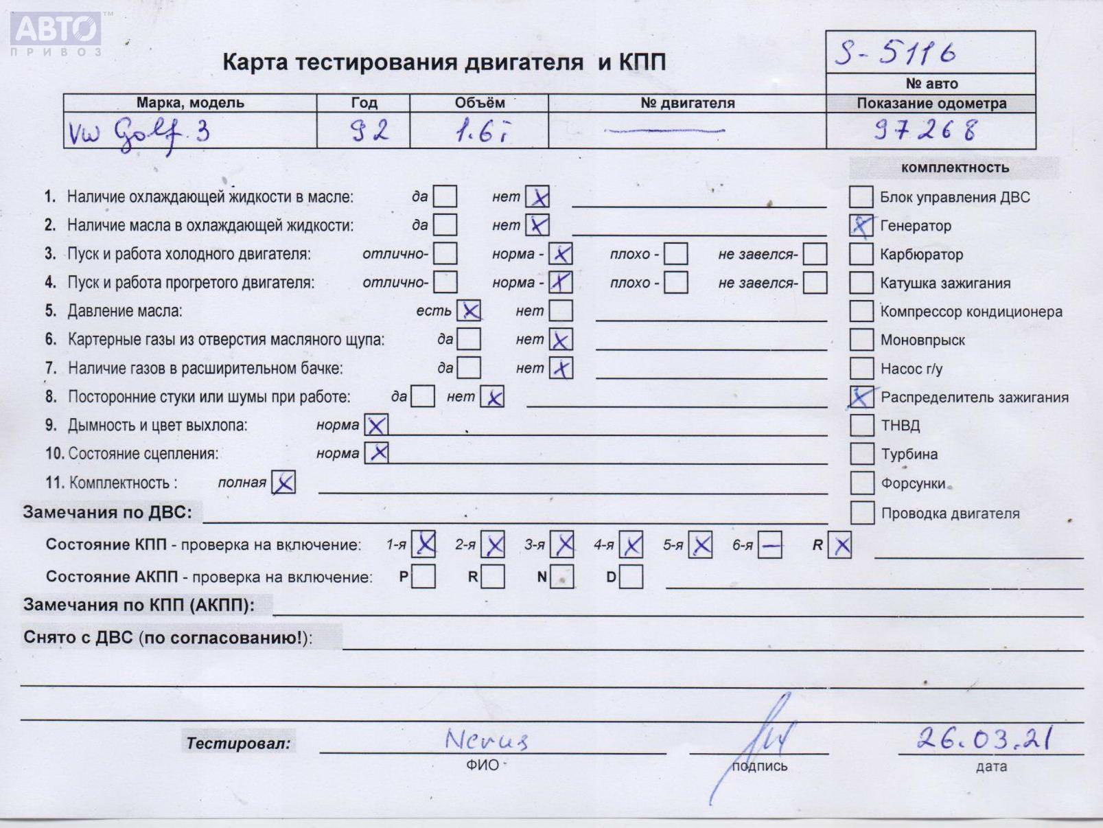 | Автомобиль / VIN: | S5116 |