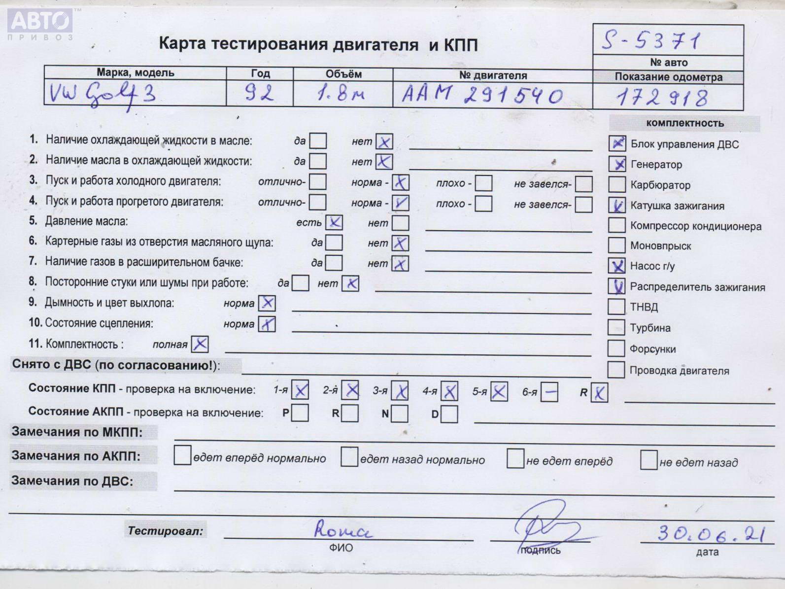 | Марка / Модель / Год: | Volkswagen Golf-3 1992 |