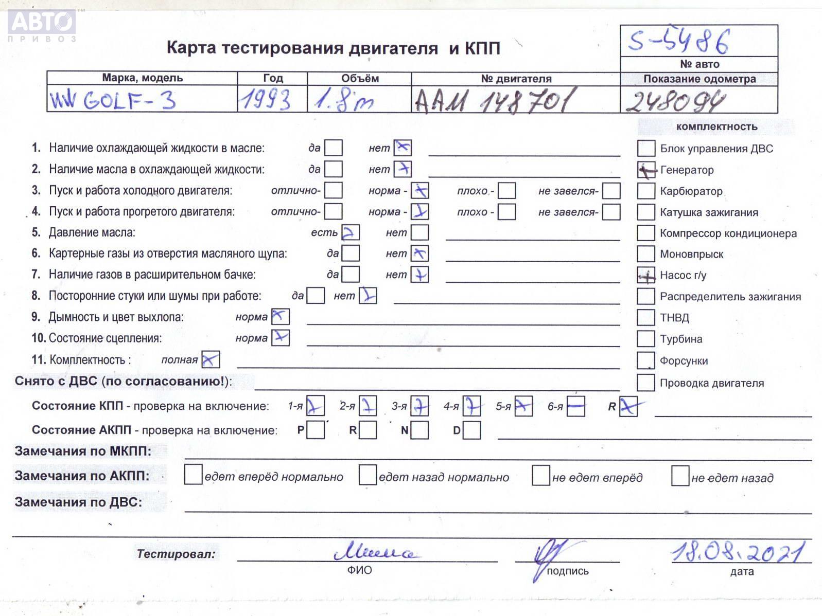 | Марка / Модель / Год: | Volkswagen Golf-3 1993 |