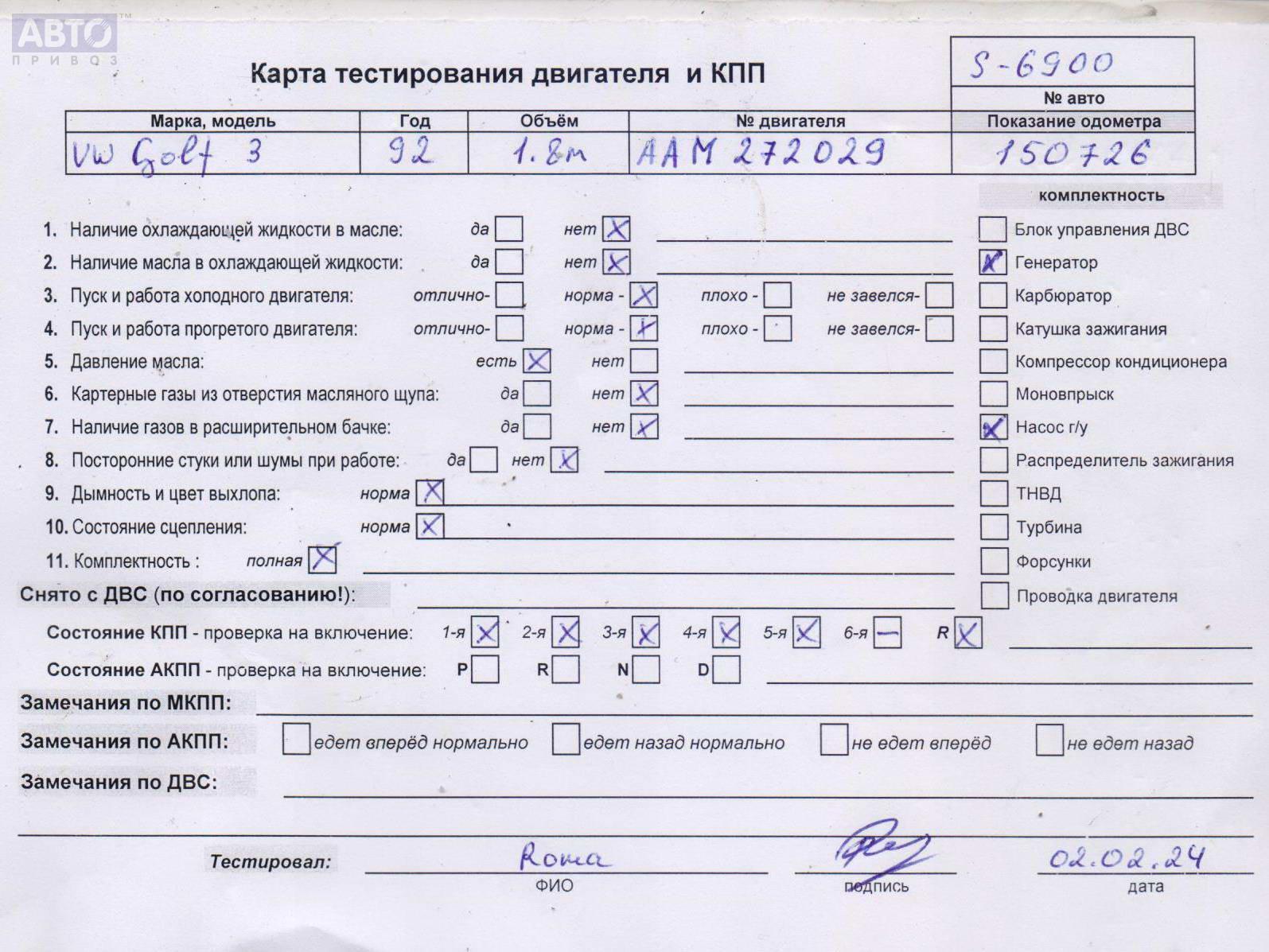 | Марка / Модель / Год: | Volkswagen Golf-3 1992 |