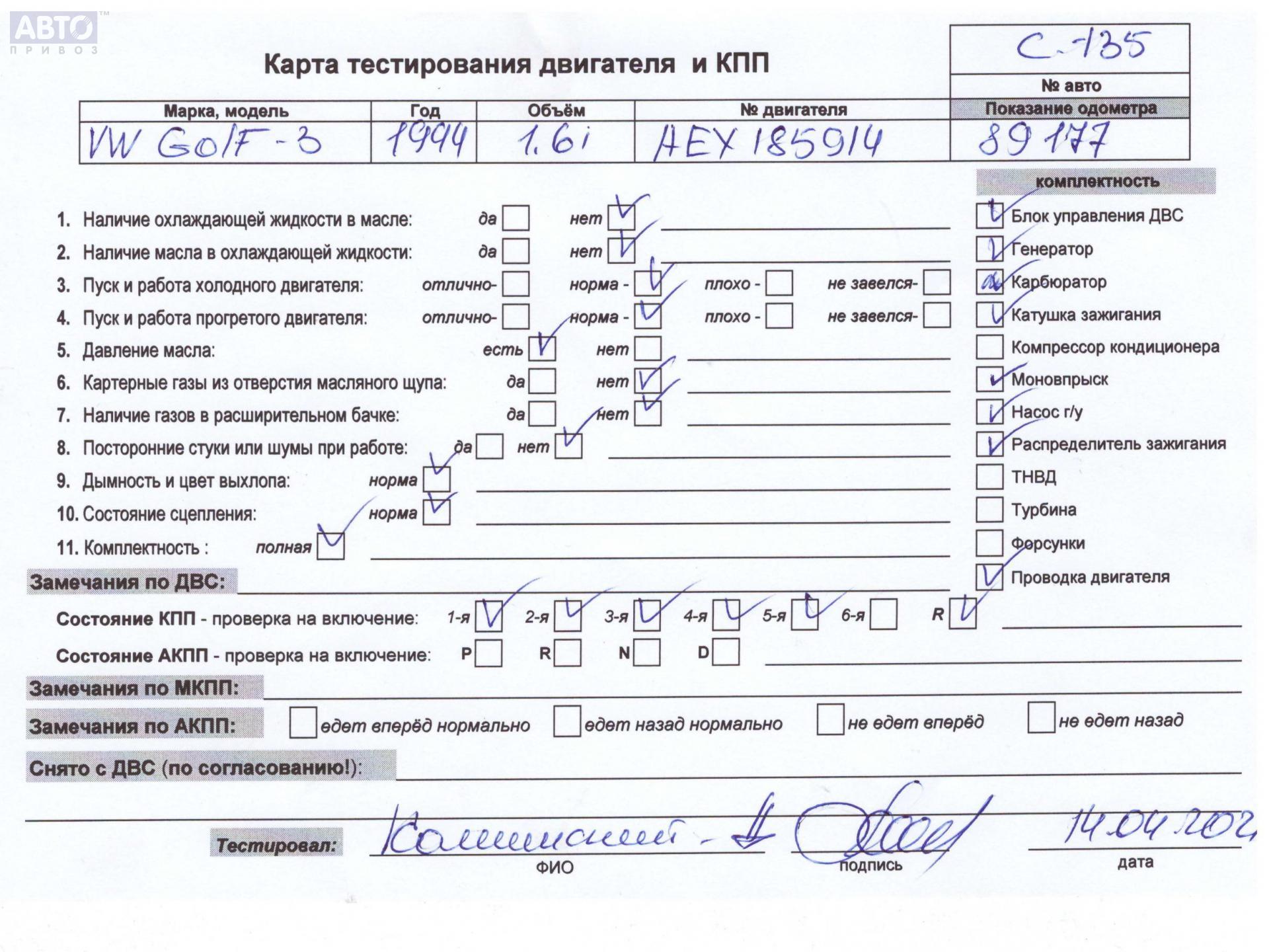 | Марка / Модель / Год: | Volkswagen Golf-3 1996 |