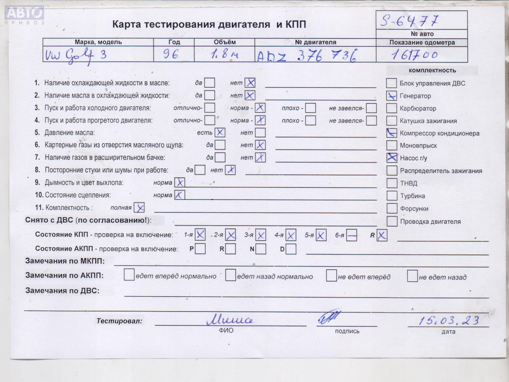 | Марка / Модель / Год: | Volkswagen Golf-3 1996 |