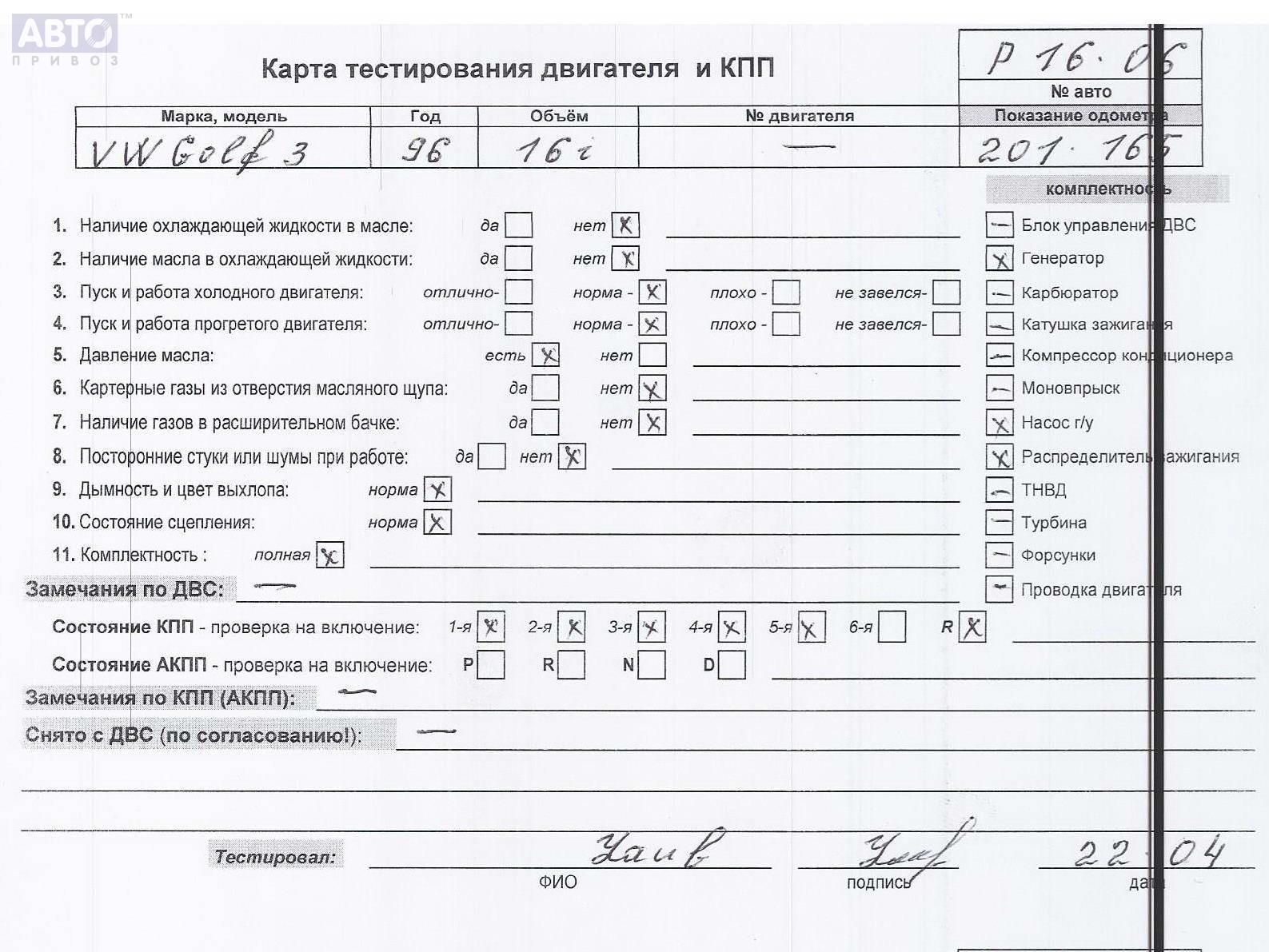 | Марка / Модель / Год: | Volkswagen Golf-3 1996 |