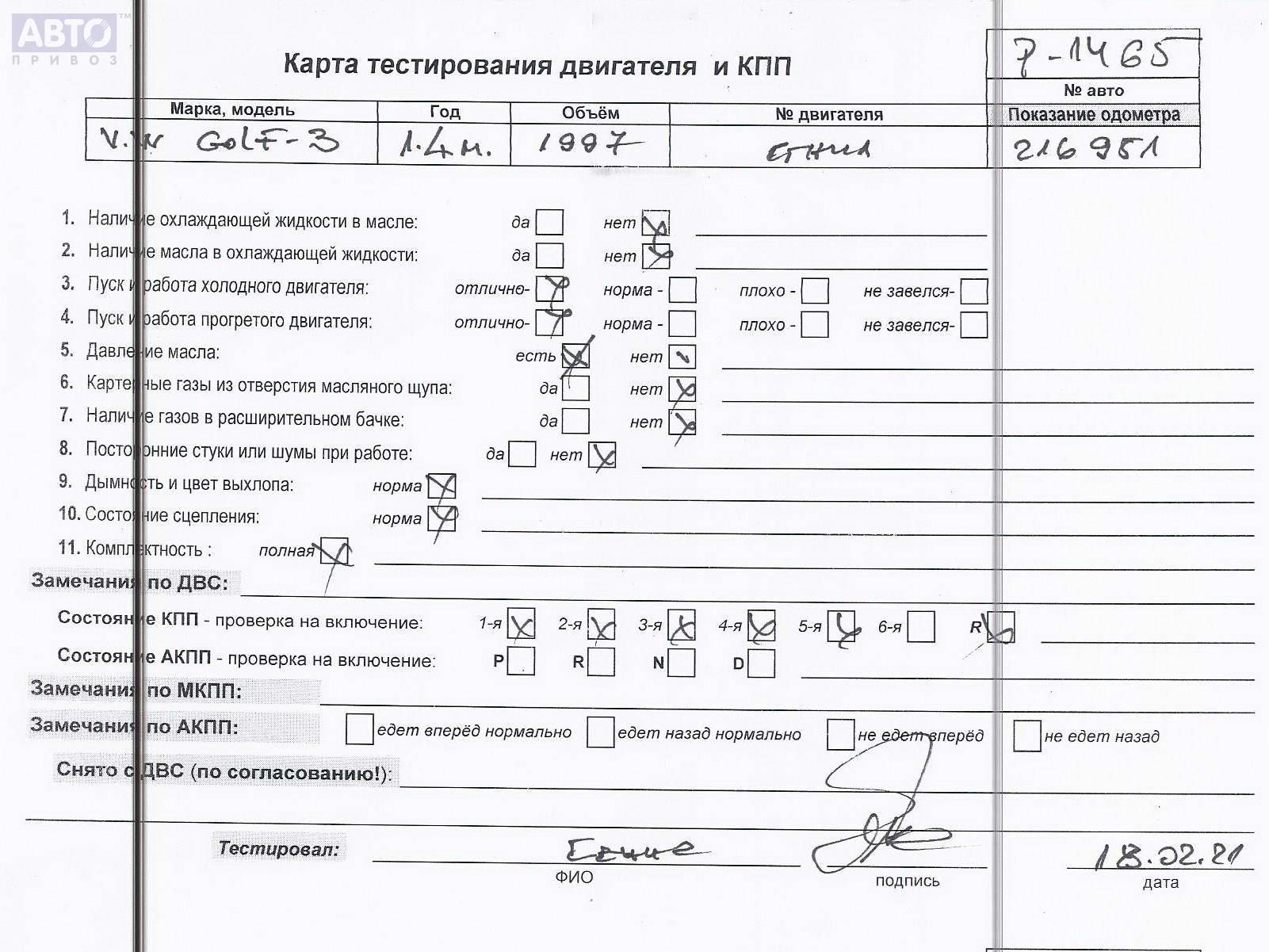 | Марка / Модель / Год: | Volkswagen Golf-3 1997 |