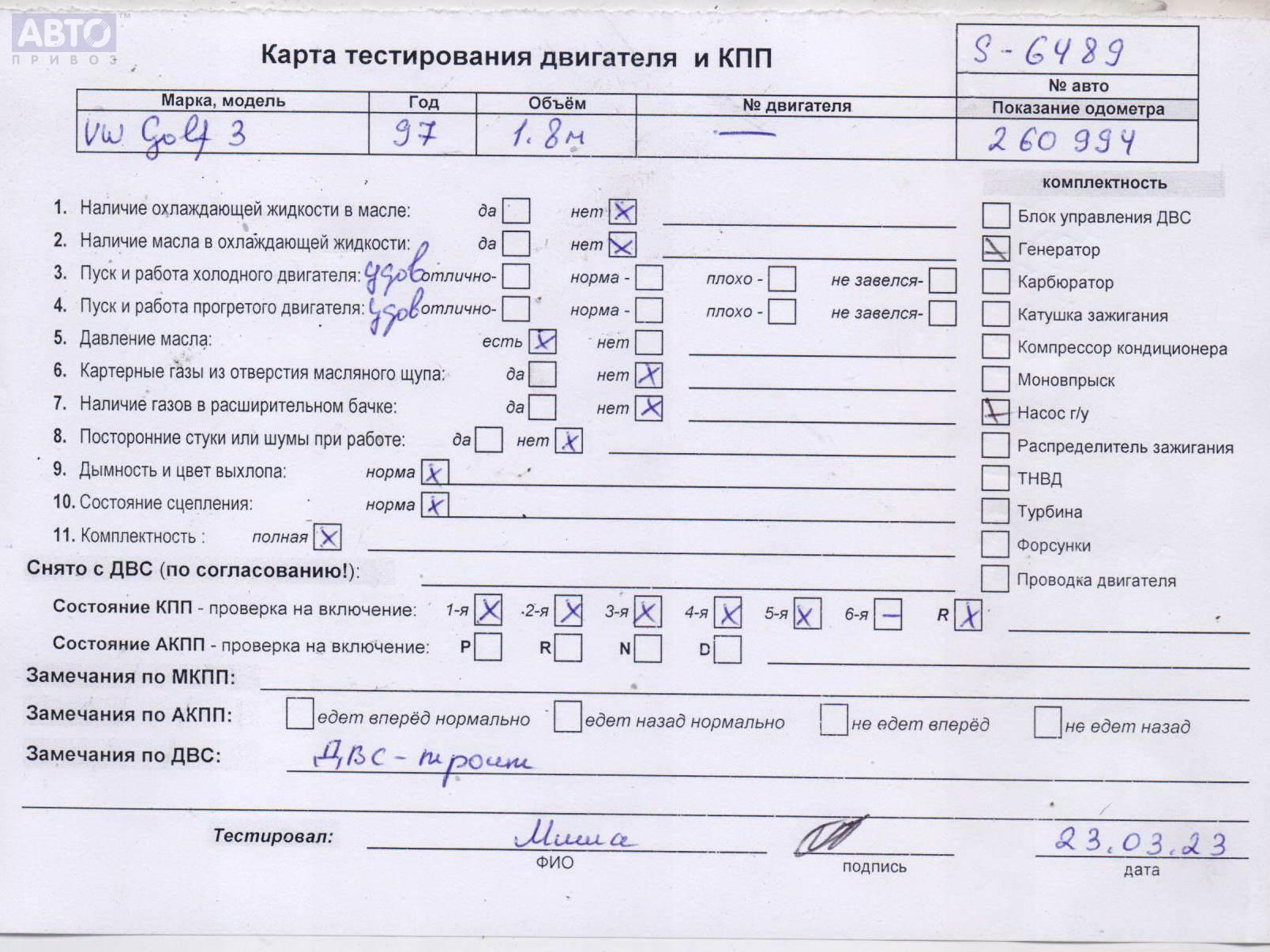 | Автомобиль / VIN: | S6489 WVWZZZ1HZWW093089 |