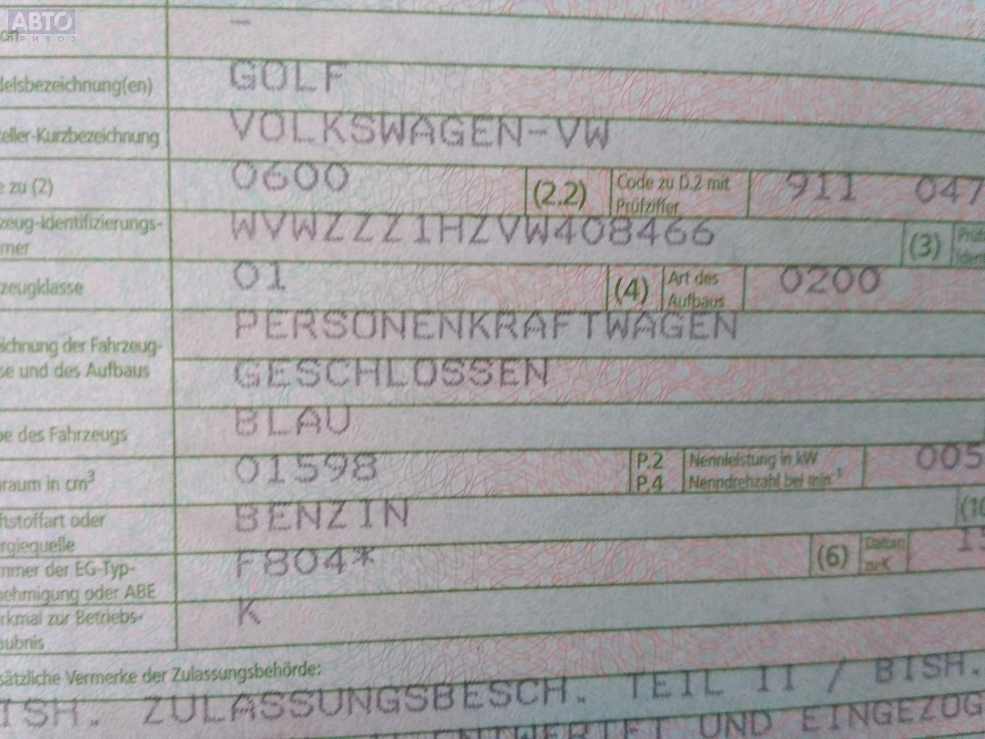 | Марка / Модель / Год: | Volkswagen Golf-3 1997 |