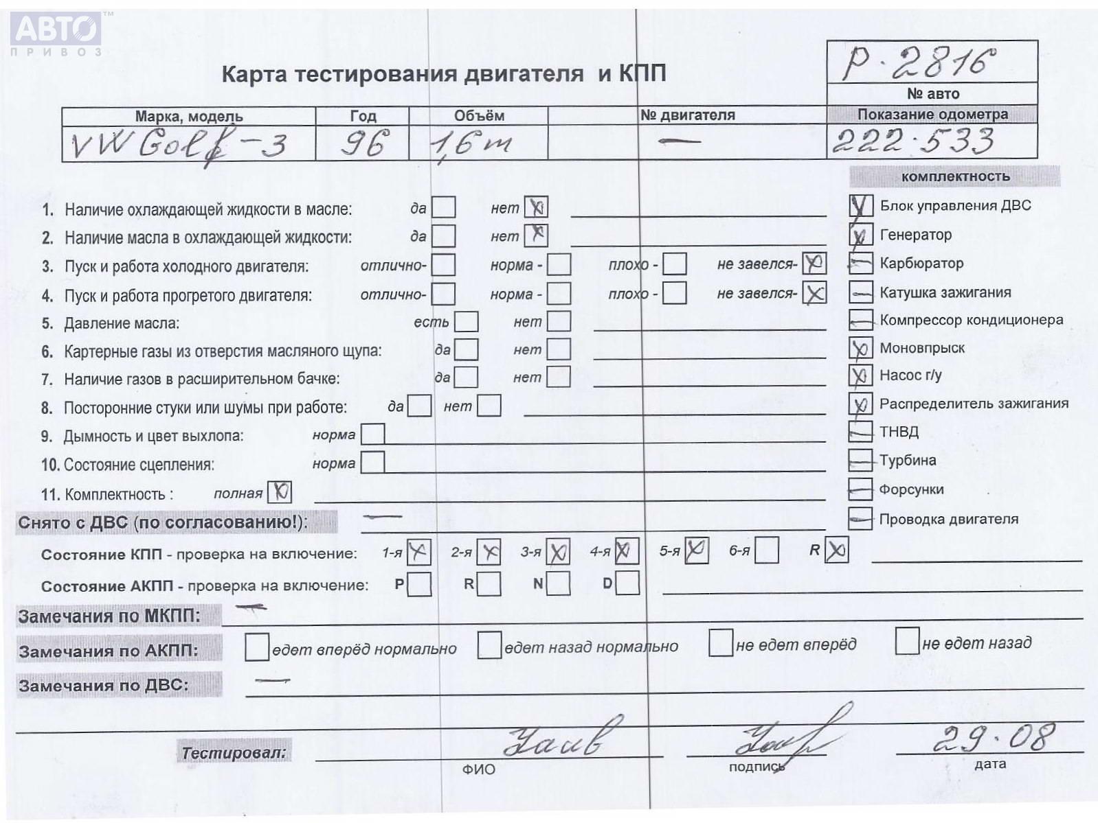 | Марка / Модель / Год: | Volkswagen Golf-3 1996 |