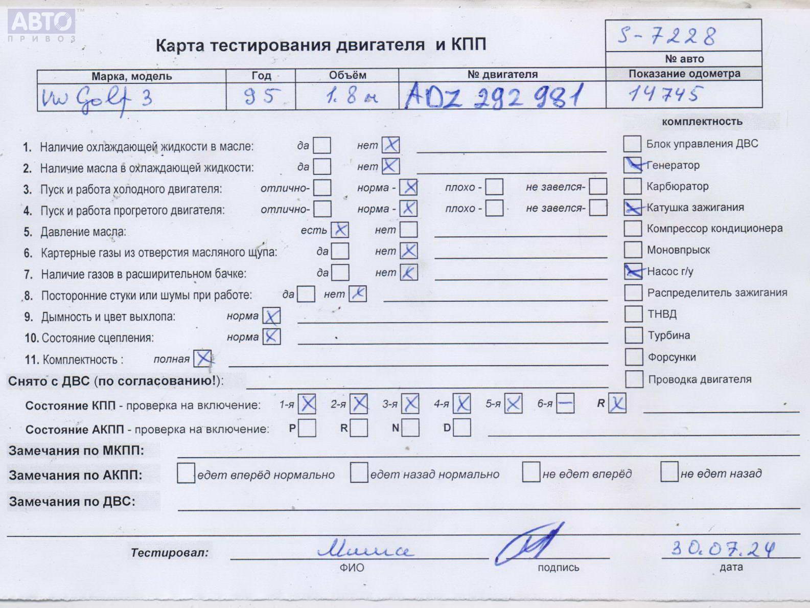 | Марка / Модель / Год: | Volkswagen Golf-3 1995 |