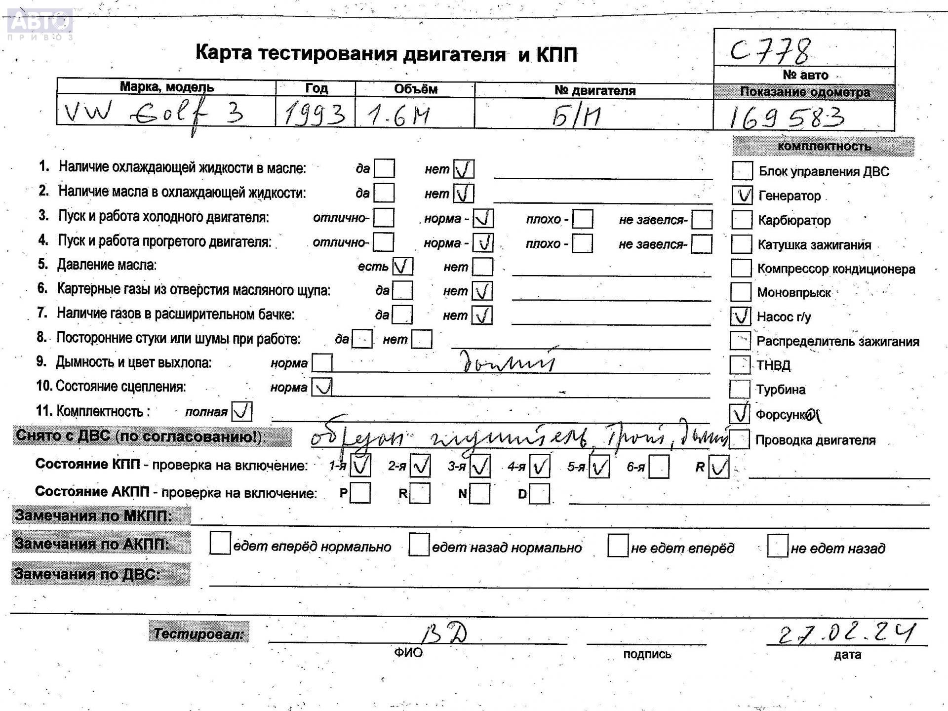 | Марка / Модель / Год: | Volkswagen Golf-3 1993 |