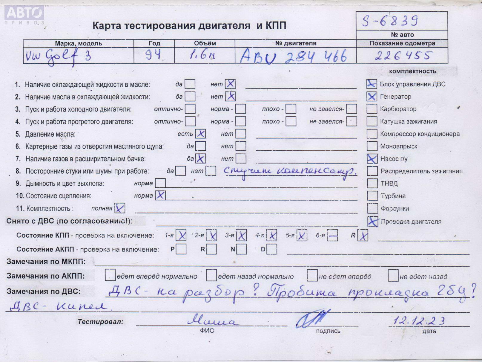 | Марка / Модель / Год: | Volkswagen Golf-3 1994 |