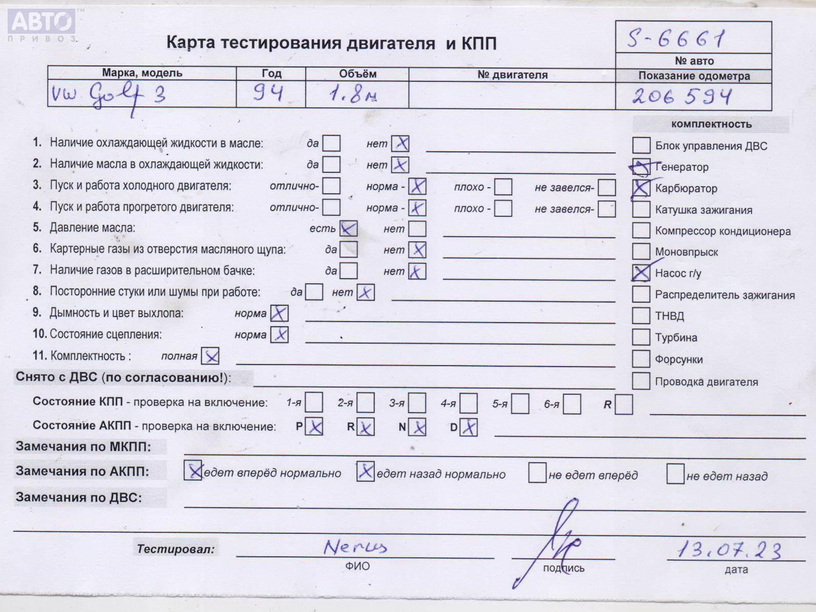 | Марка / Модель / Год: | Volkswagen Golf-3 1994 |