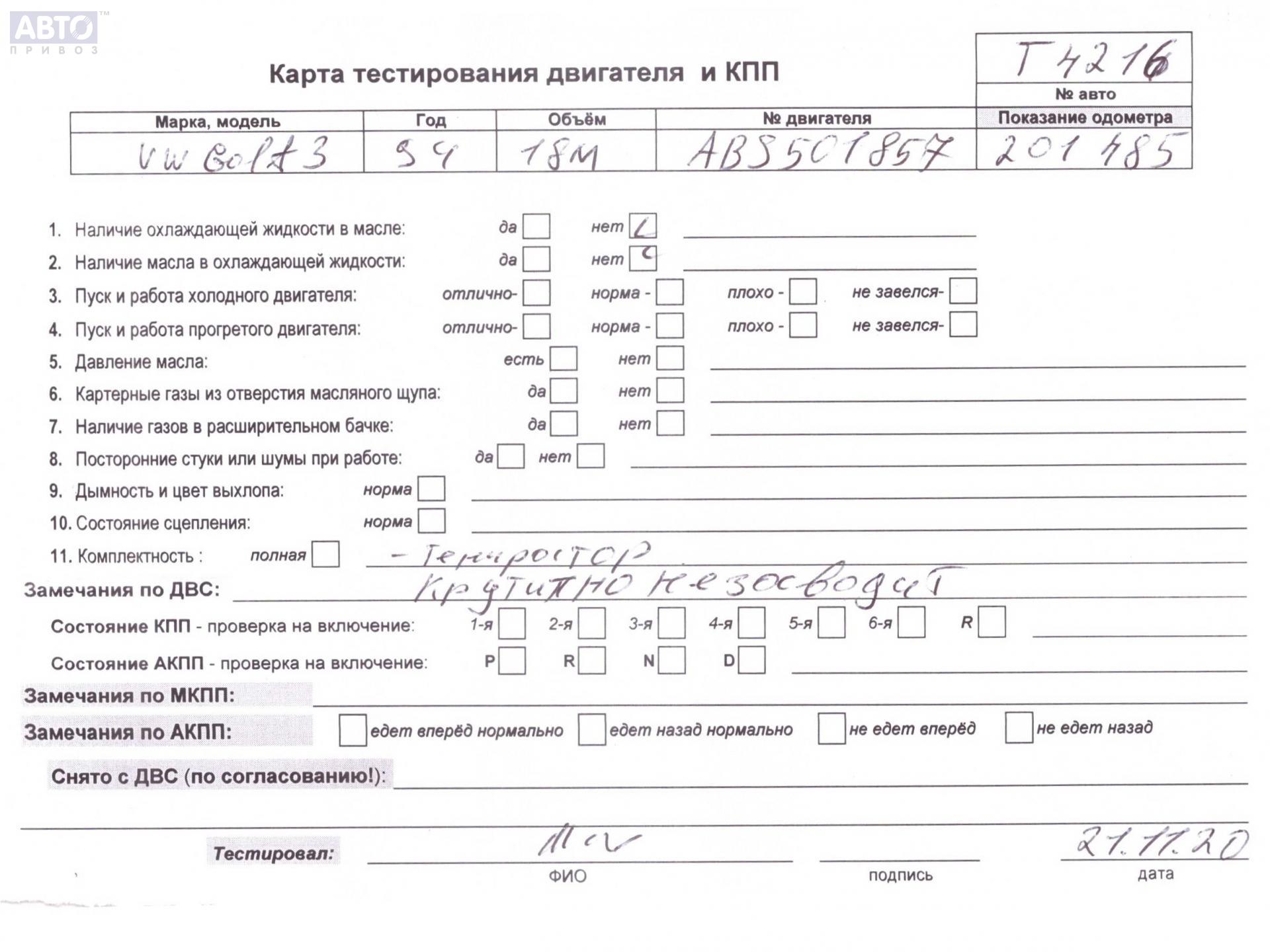 | Марка / Модель / Год: | Volkswagen Golf-3 1995 |