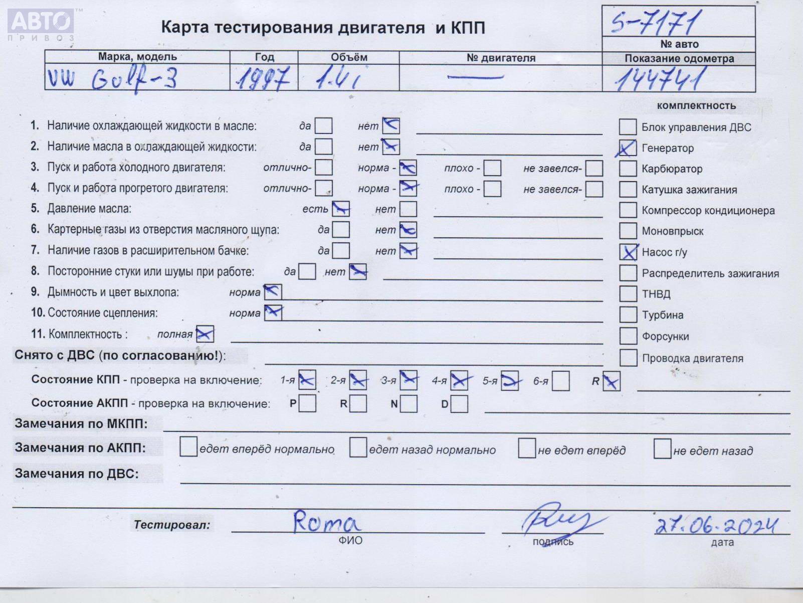 | Марка / Модель / Год: | Volkswagen Golf-3 1997 |