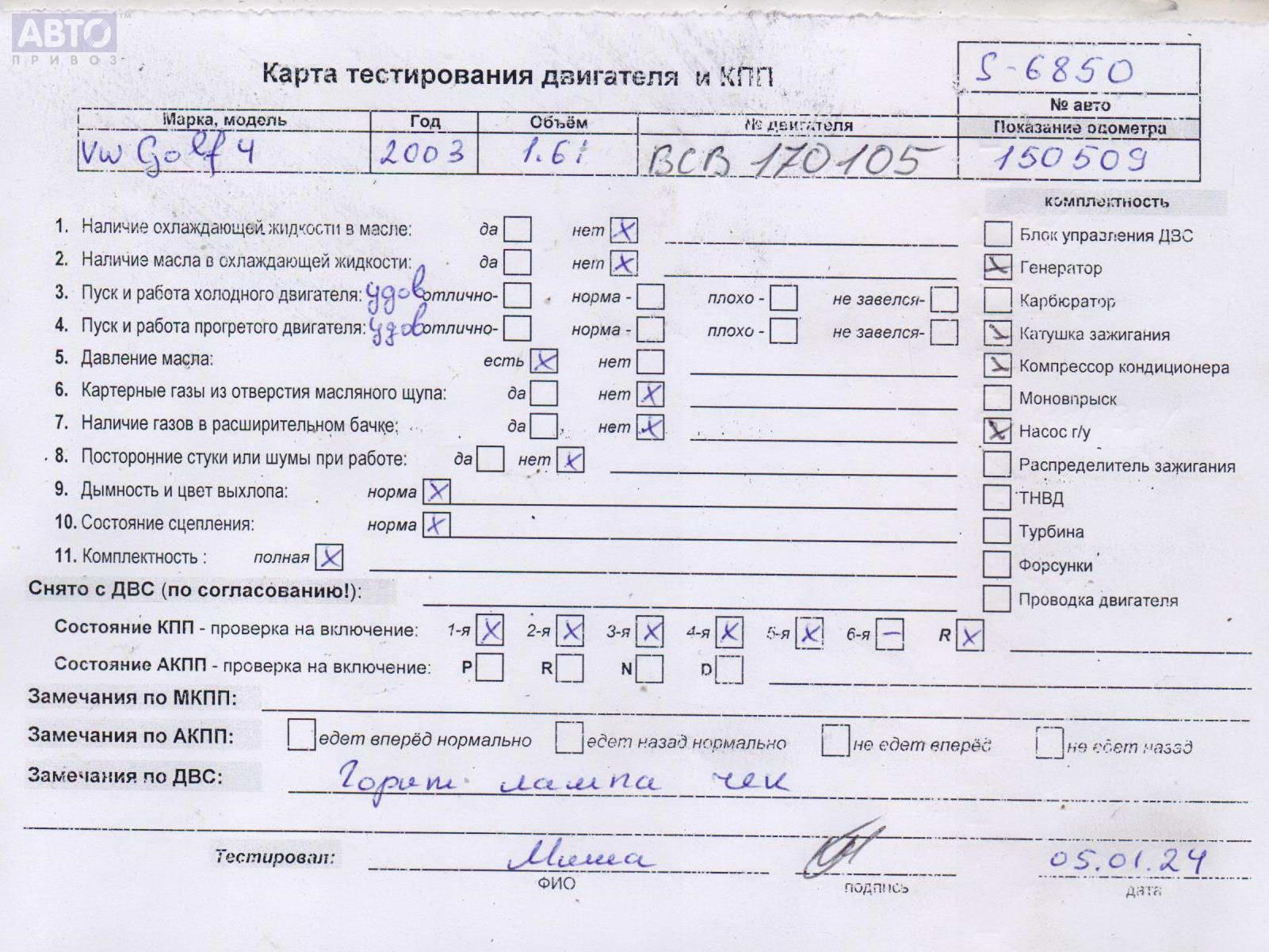 | Марка / Модель / Год: | Volkswagen Golf-4 2003 |