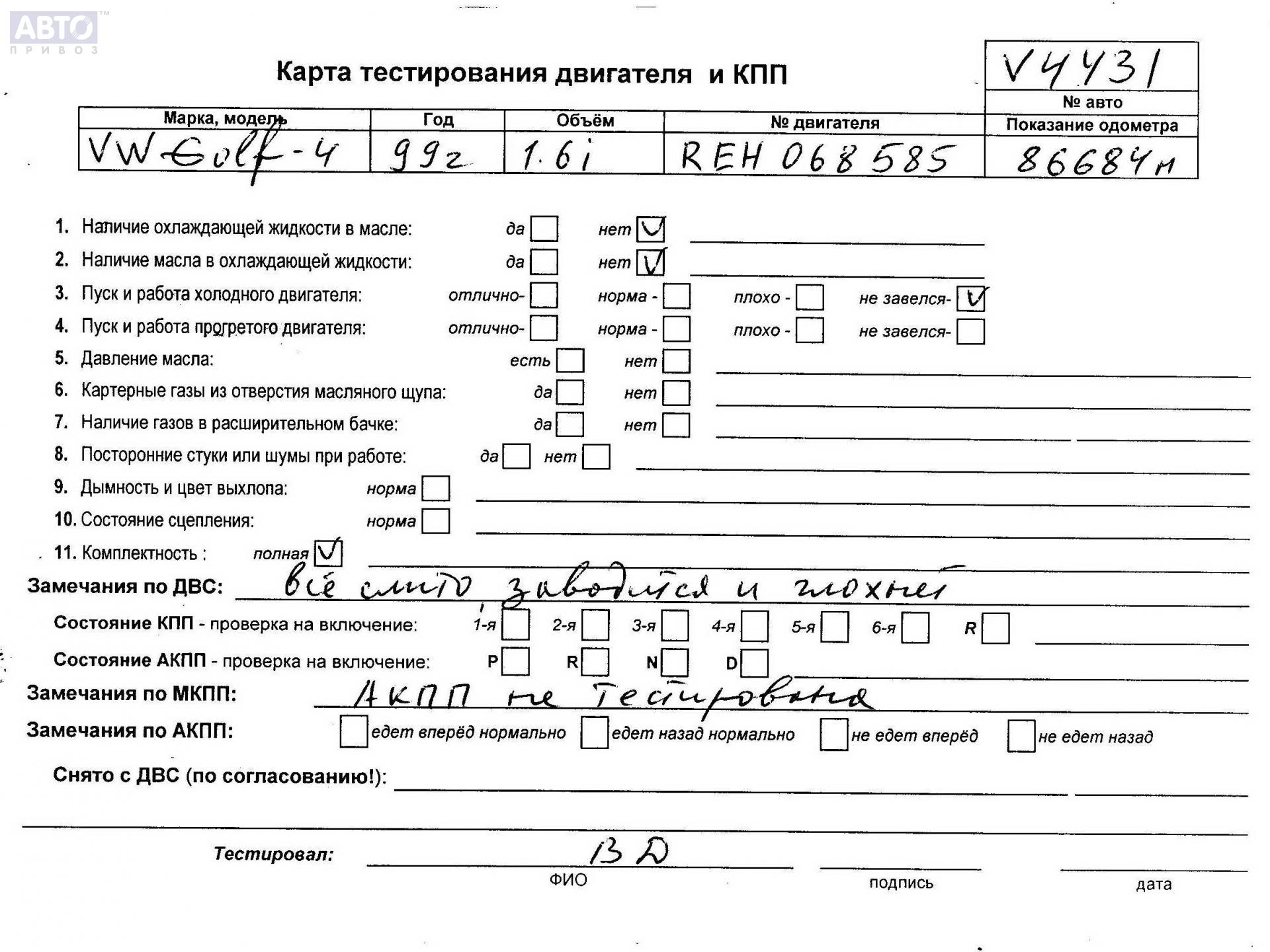 | Автомобиль / VIN: | V4431 WVWZZZ1JZXU433852 |
