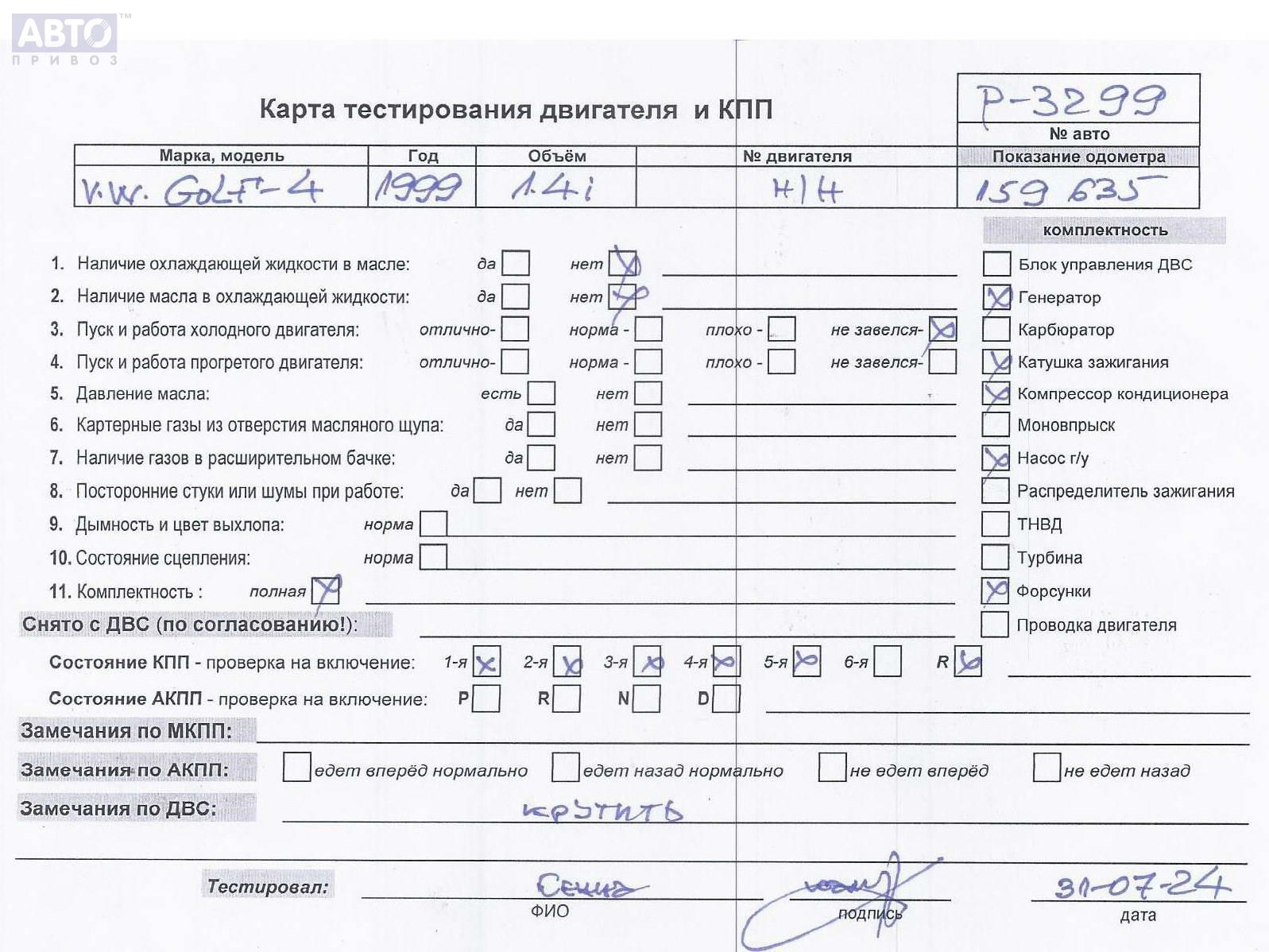 | Марка / Модель / Год: | Volkswagen Golf-4 1999 |