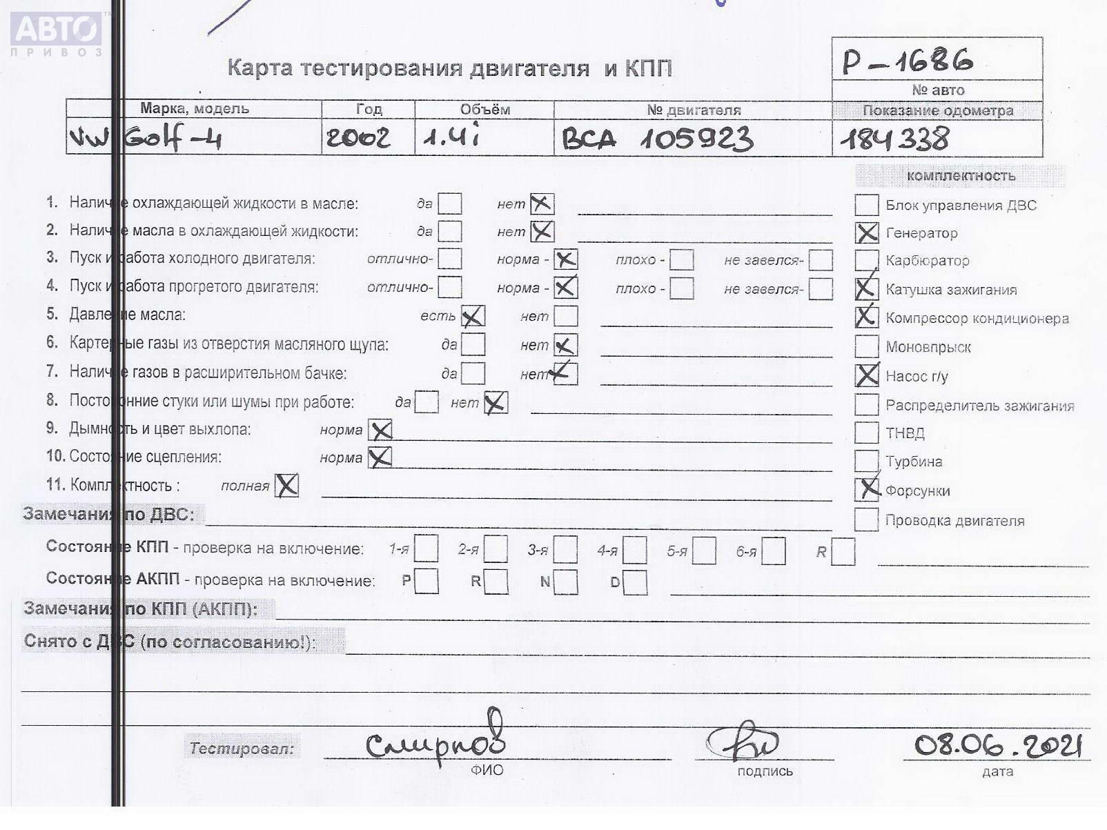 | Марка / Модель / Год: | Volkswagen Golf-4 2002 |