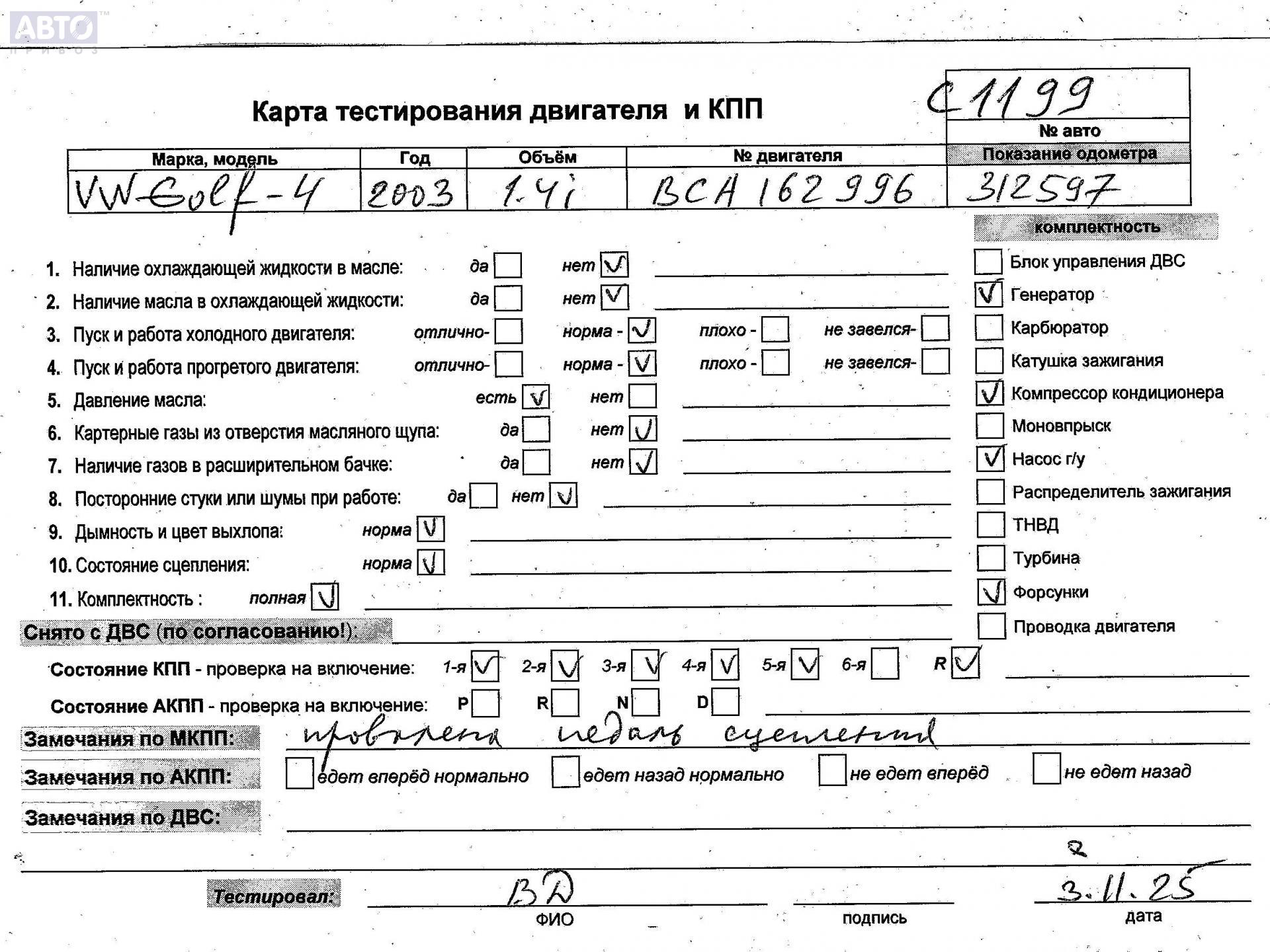 | Марка / Модель / Год: | Volkswagen Golf-4 2002 |