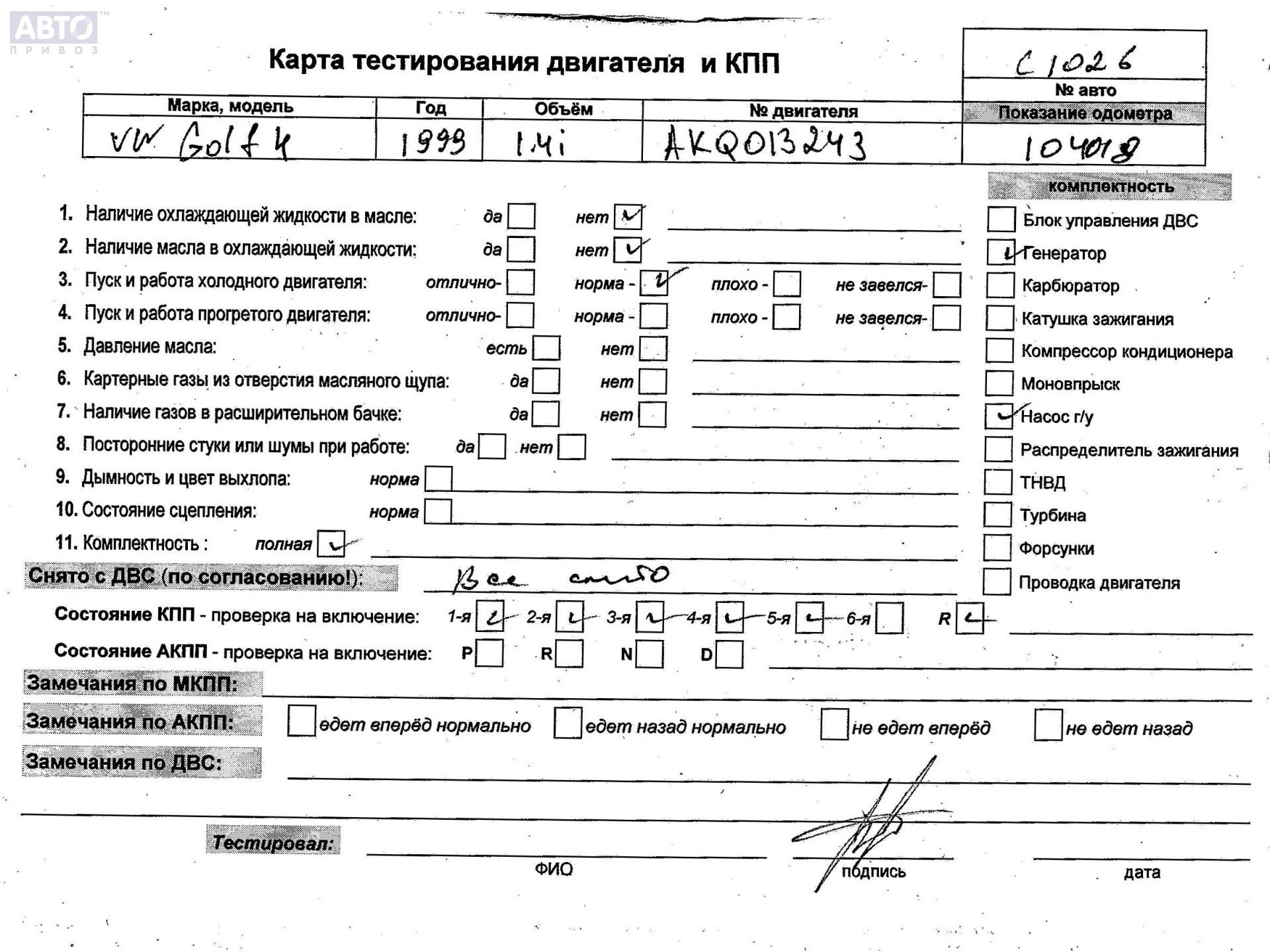 | Автомобиль / VIN: | C1026 WVWZZZ1JZWW023183 |