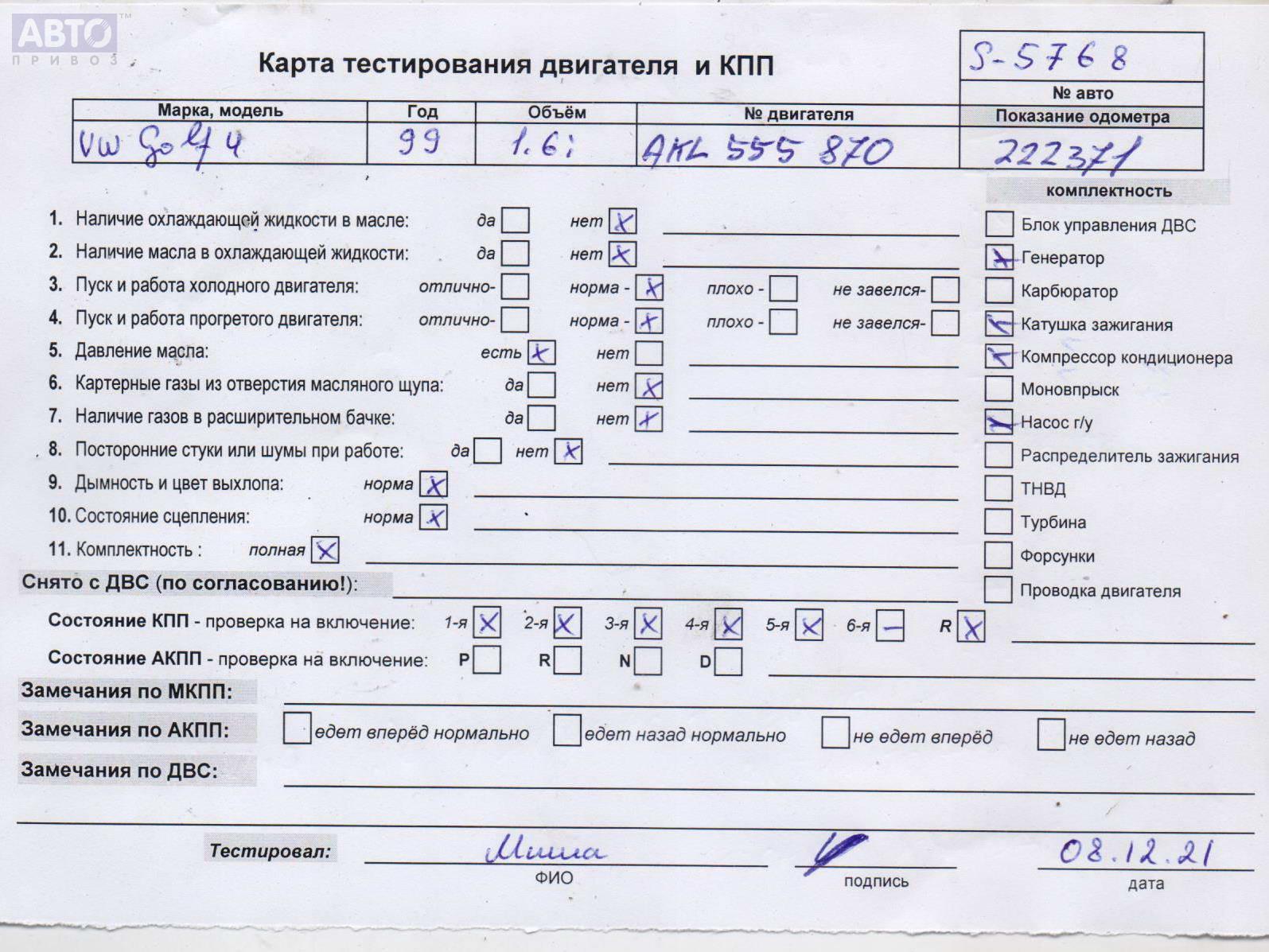| Автомобиль / VIN: | S5768 WVWZZZ1JZYW221871 |