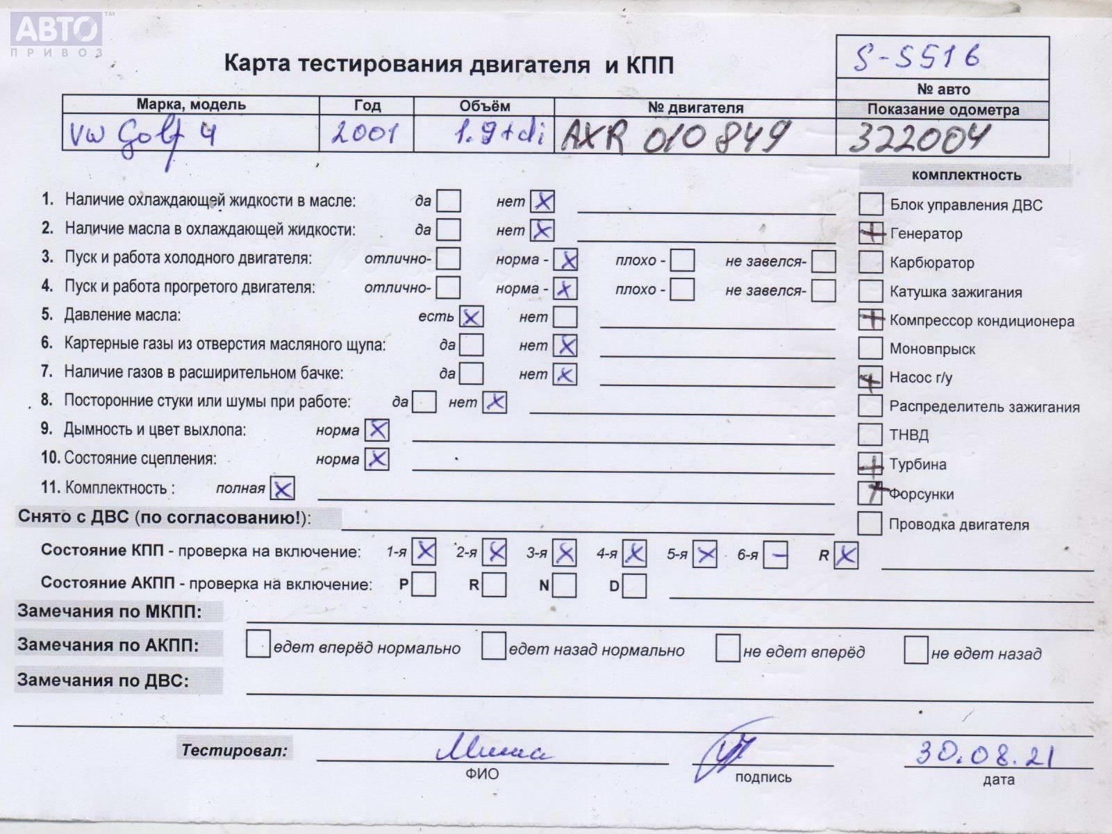 | Марка / Модель / Год: | Volkswagen Golf-4 2001 |