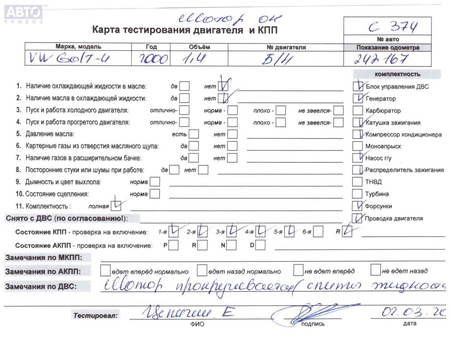 | Автомобиль / VIN: | C0374 WVWZZZ1JZ2W360975 |