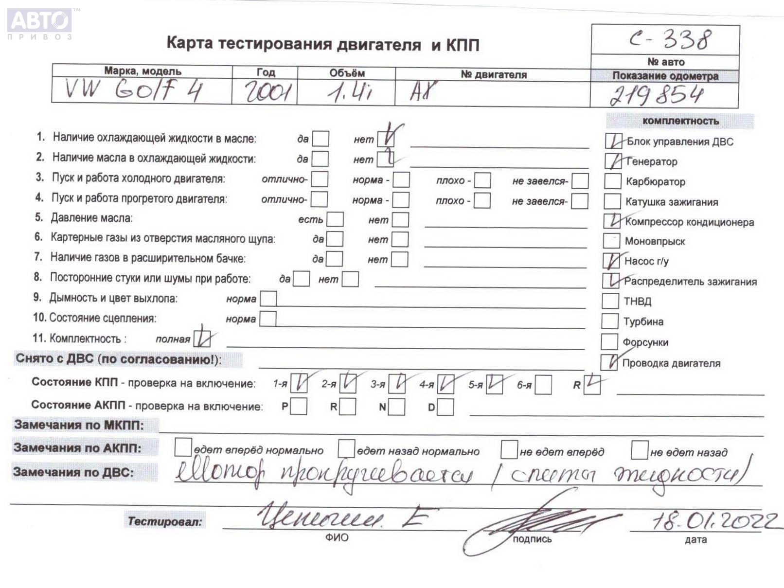| Марка / Модель / Год: | Volkswagen Golf-4 2001 |
