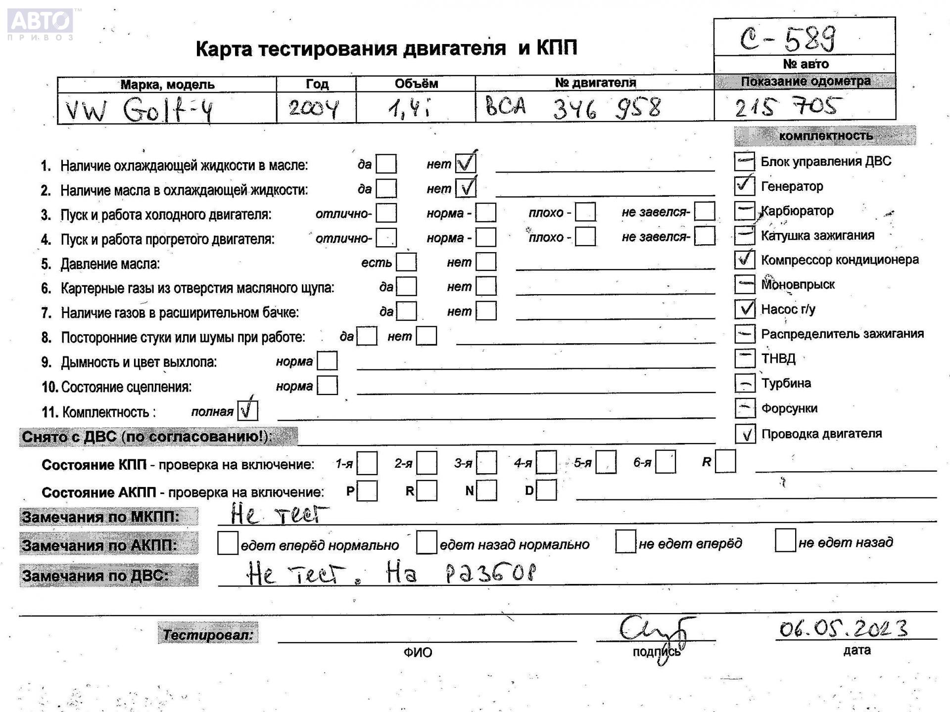 | Марка / Модель / Год: | Volkswagen Golf-4 2004 |