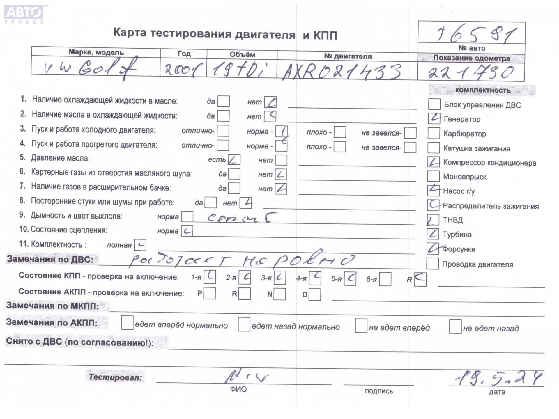 | Марка / Модель / Год: | Volkswagen Golf-4 2001 |