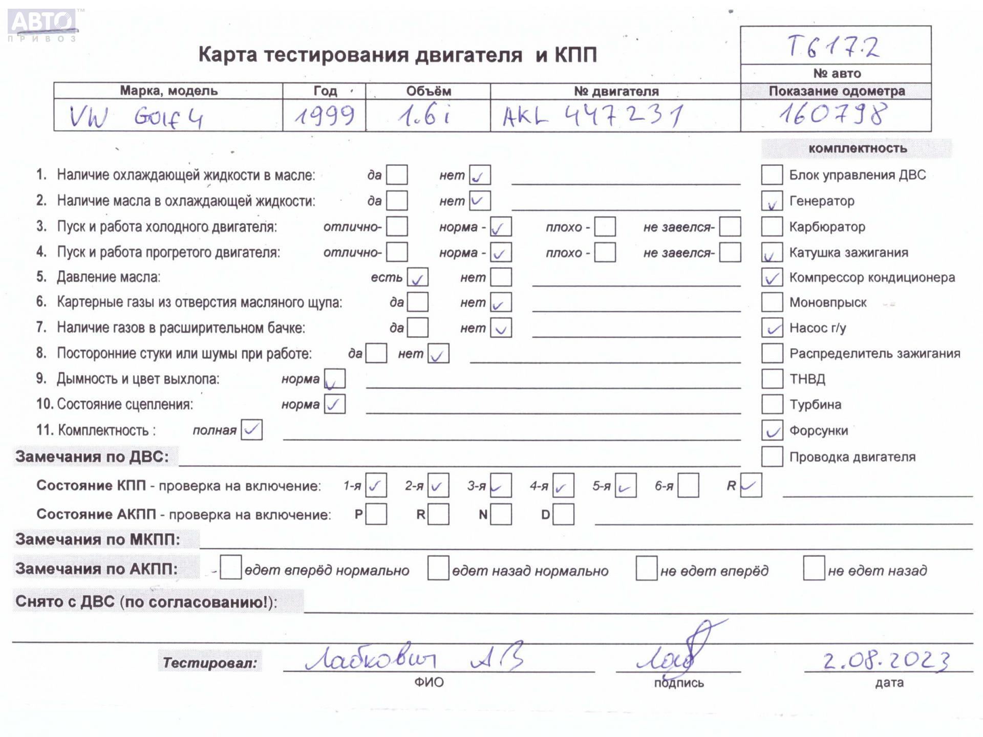 | Марка / Модель / Год: | Volkswagen Golf-4 1999 |