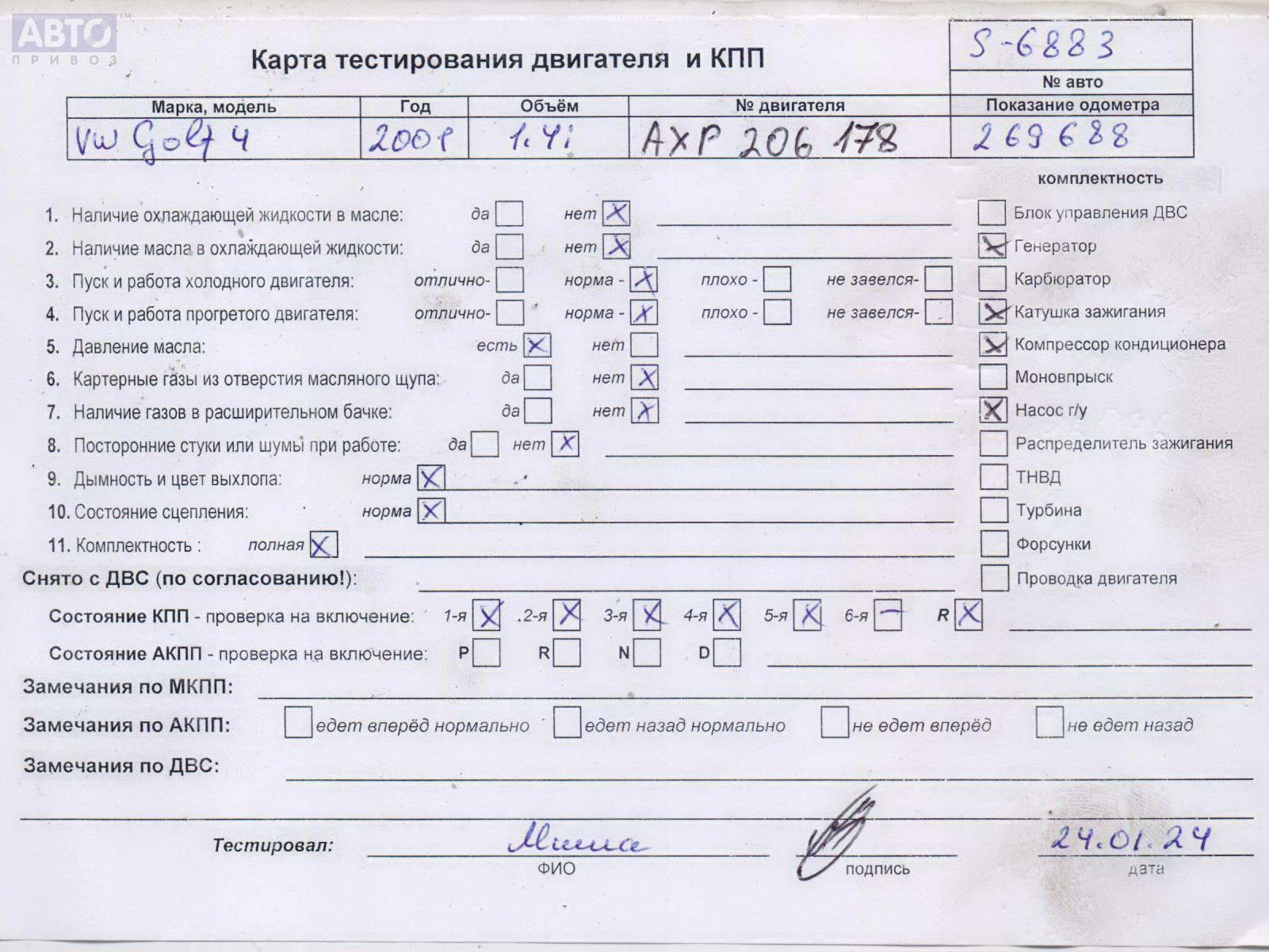 | Марка / Модель / Год: | Volkswagen Golf-4 2001 |
